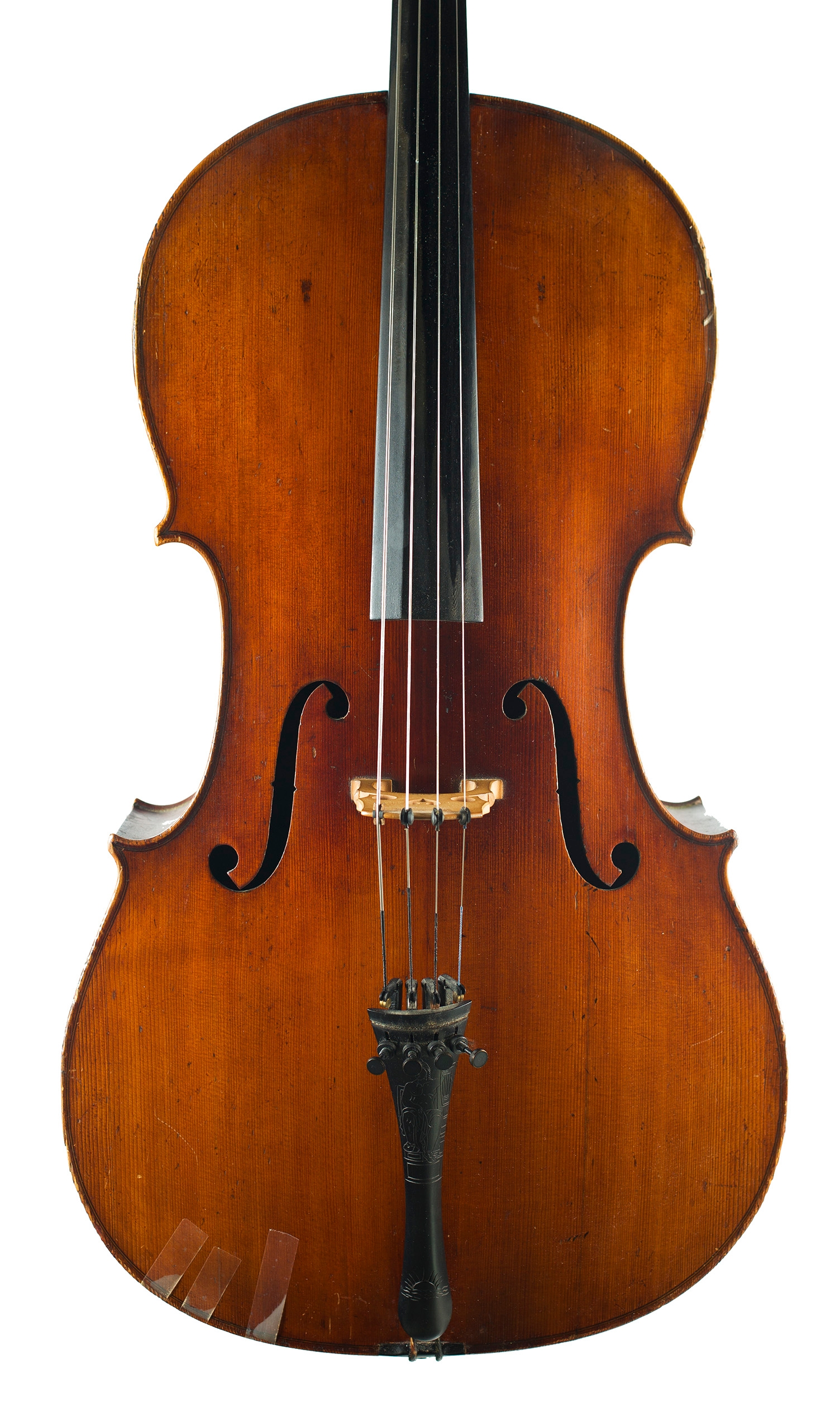 A cello, labelled A. Ferdinand Petzold