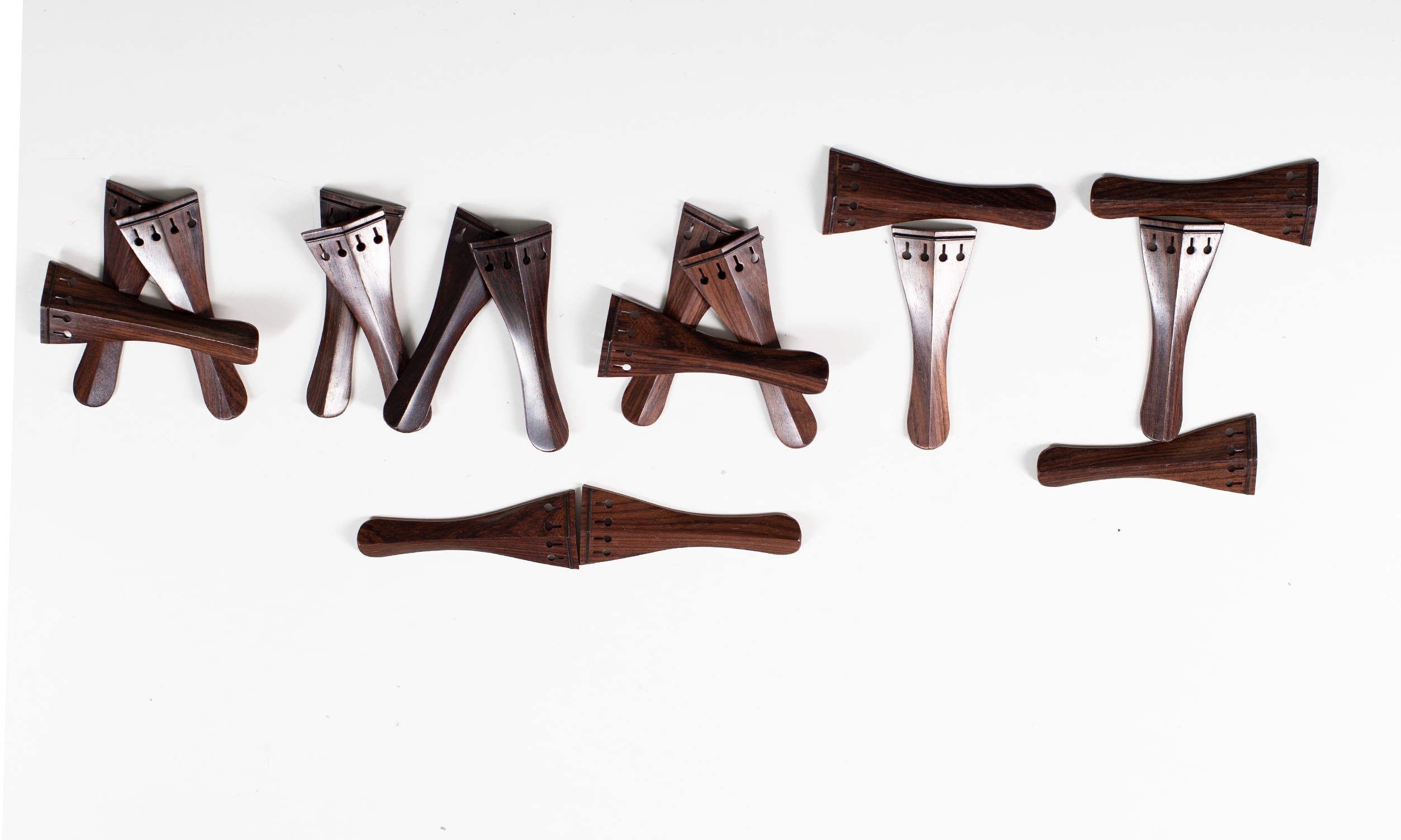 Seventeen violin tailpieces, rosewood