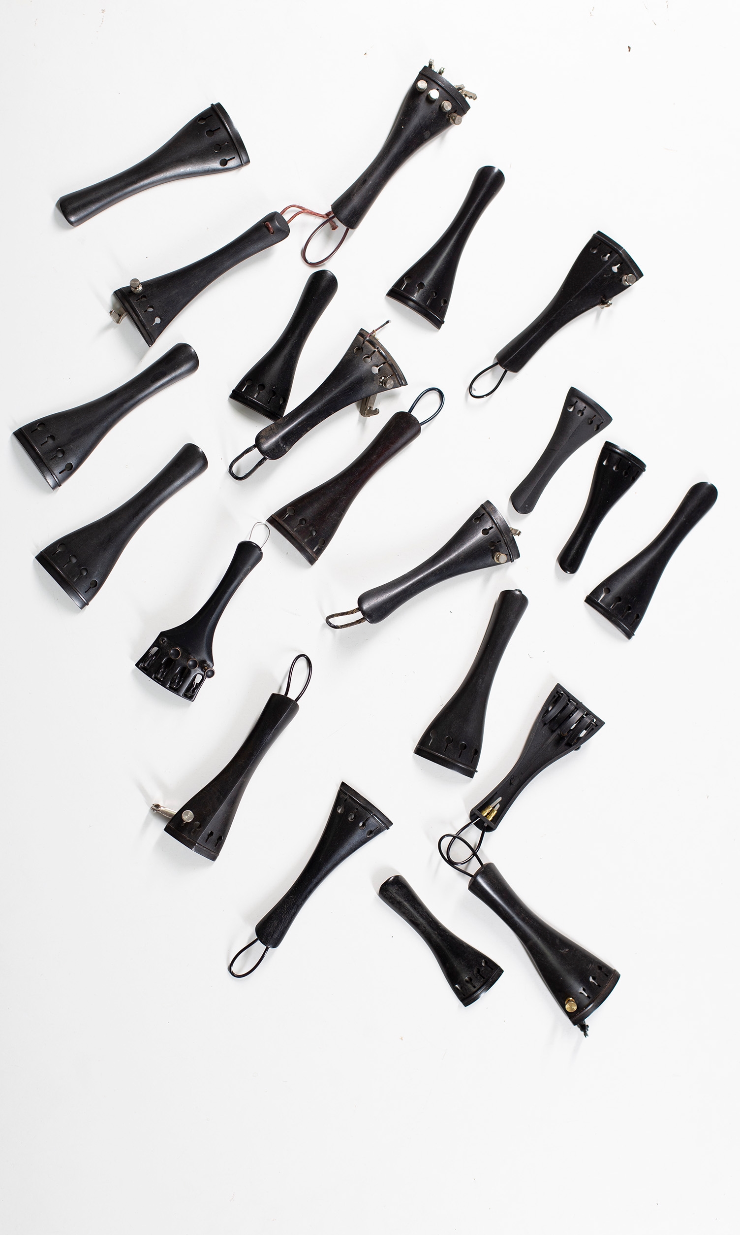 Twenty-one ebony tailpieces, various sizes