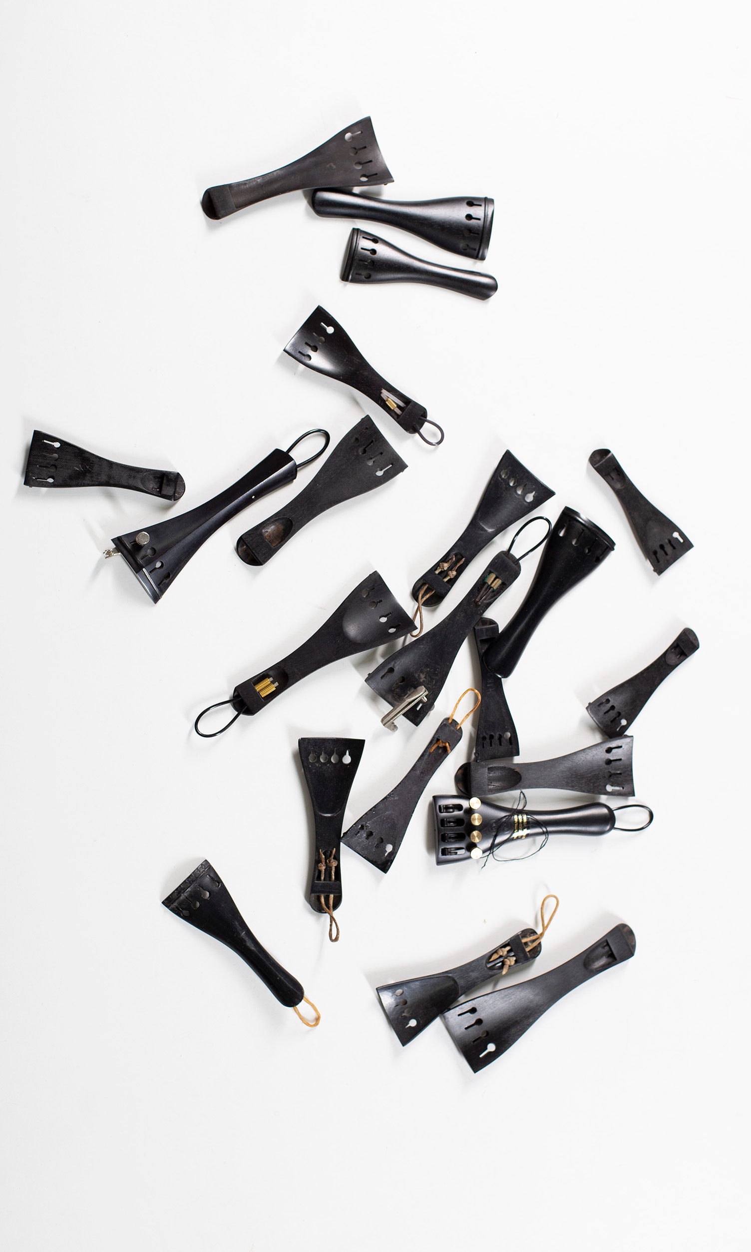 Twenty ebony tailpieces, various sizes