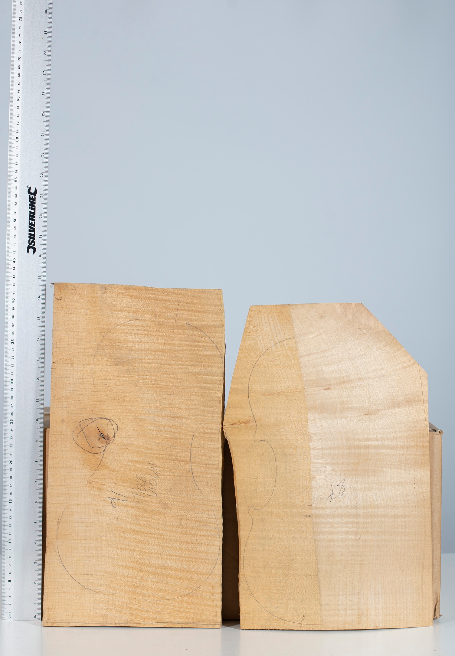 Two one-piece violin backs, maple