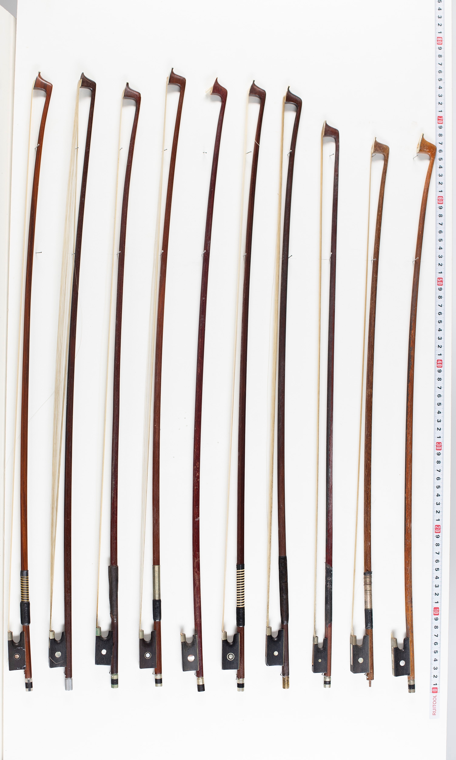 Ten violin bows, varying lengths