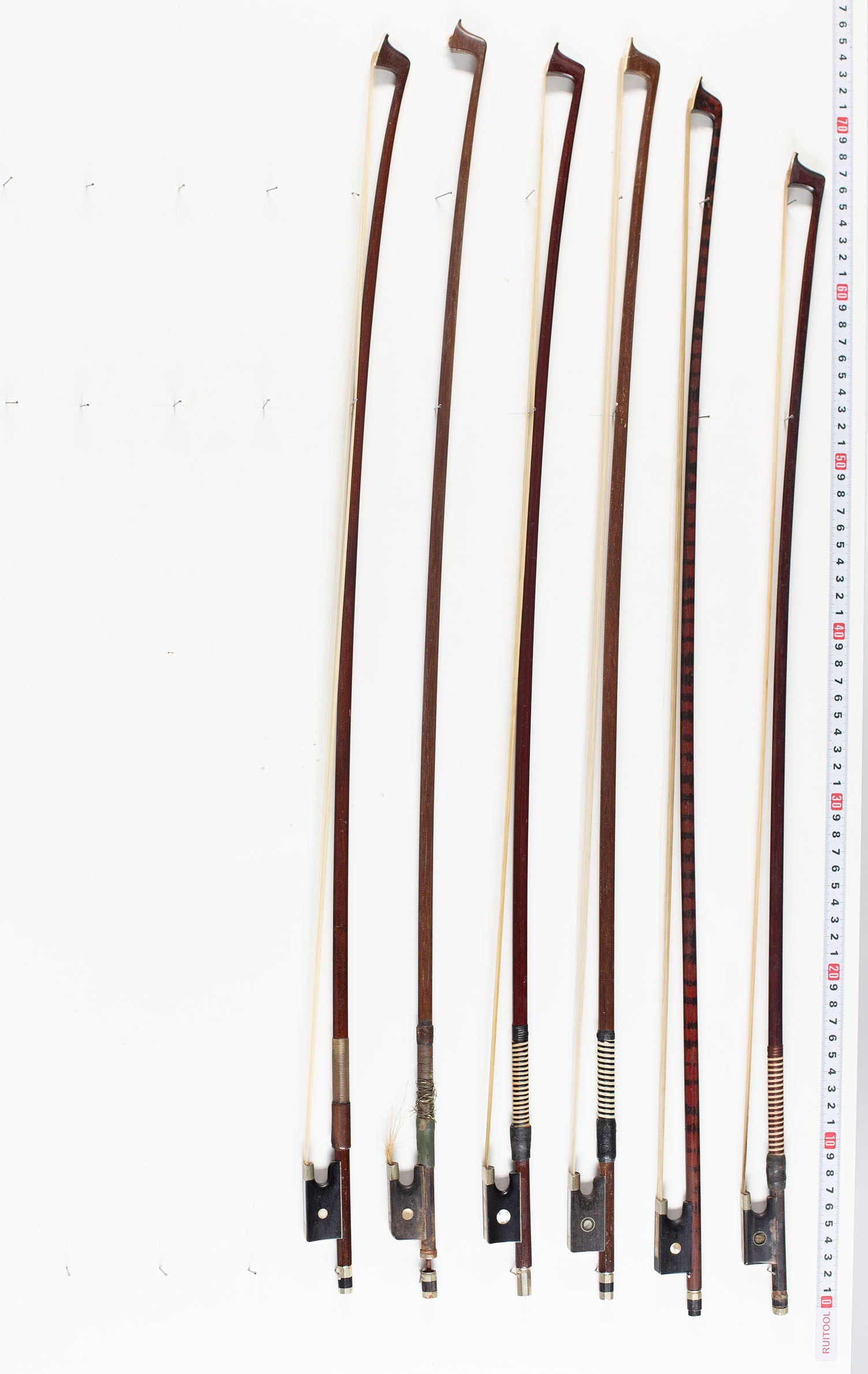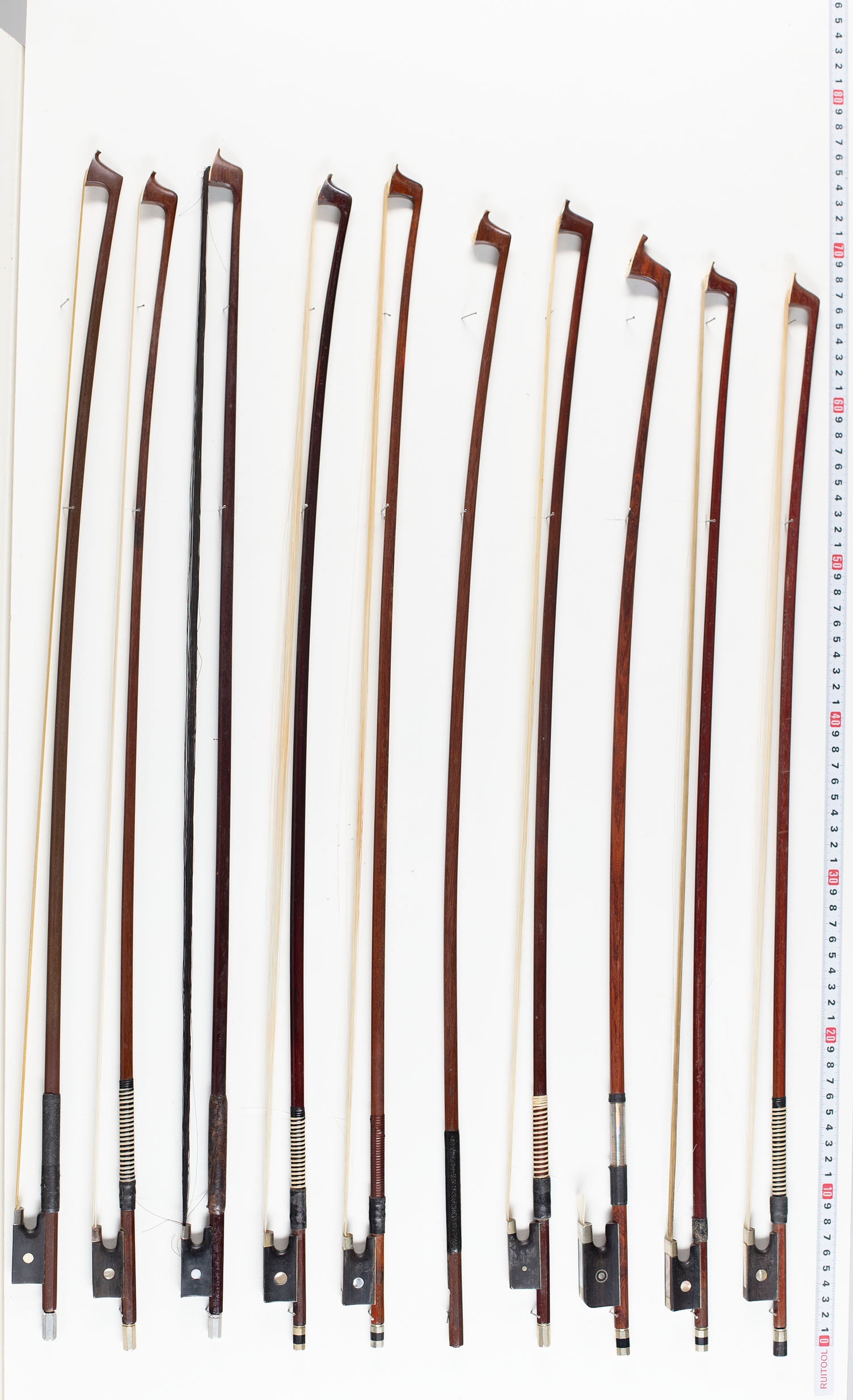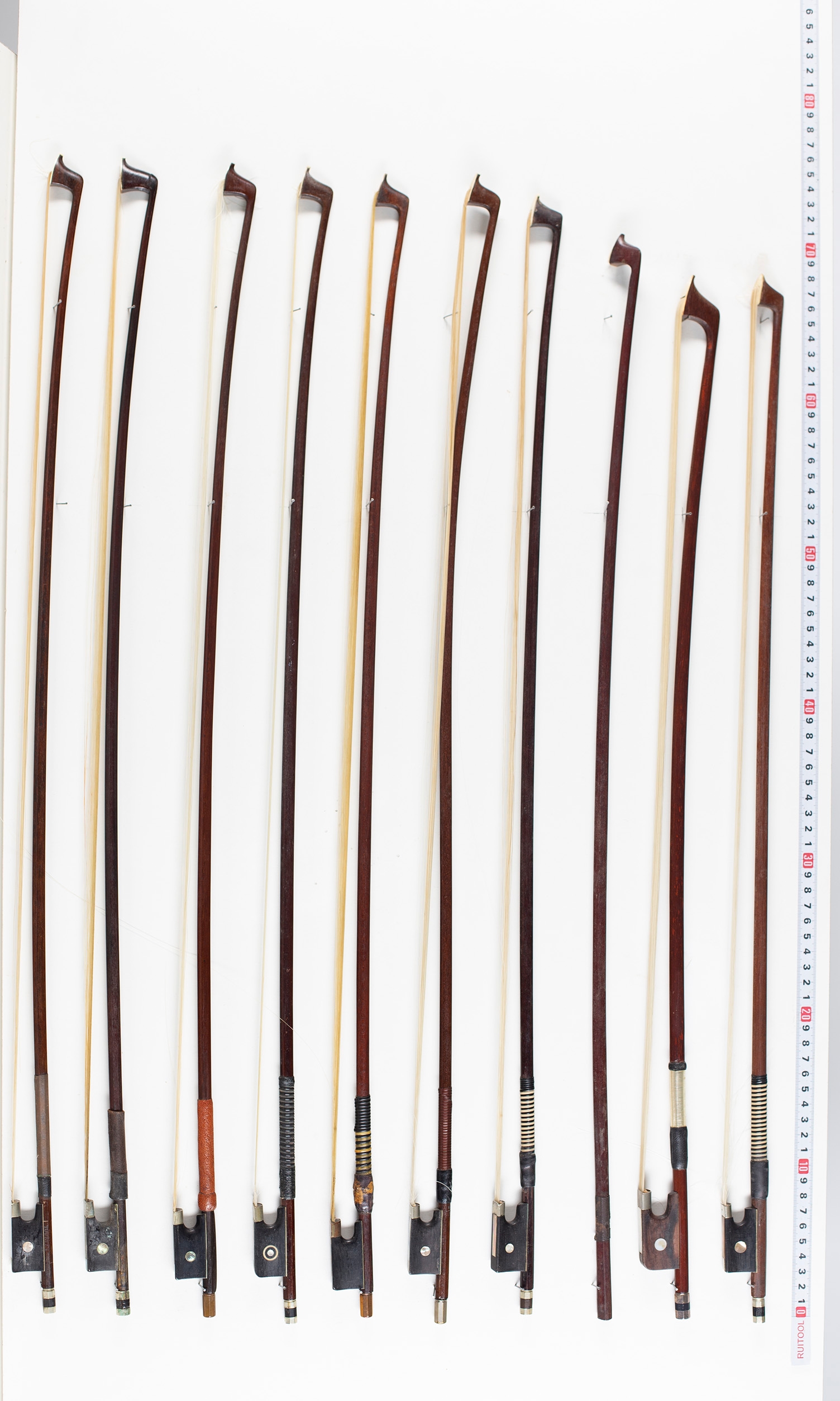 Twenty-two violin bows, two cello bows and two bow sticks, varying lengths