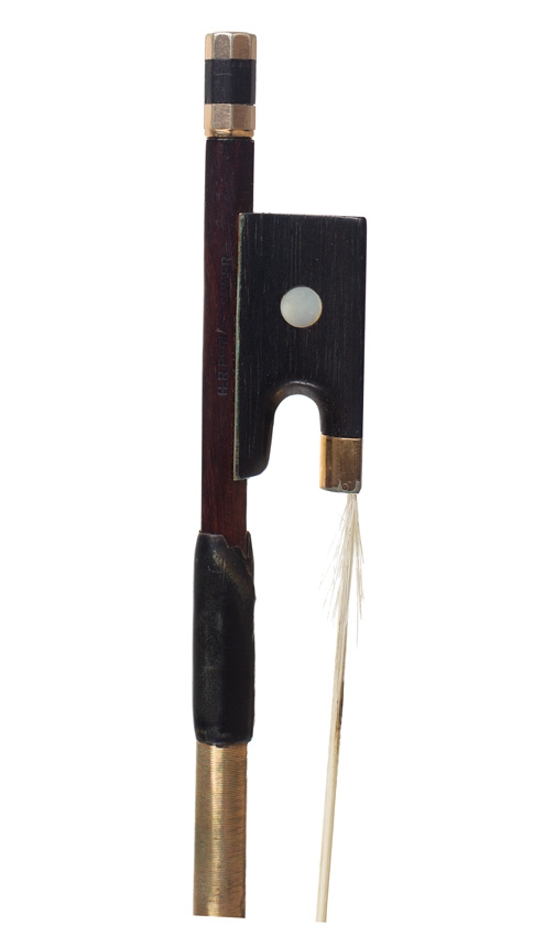 A gold-mounted violin bow by H. R. Pfretzschner, Germany