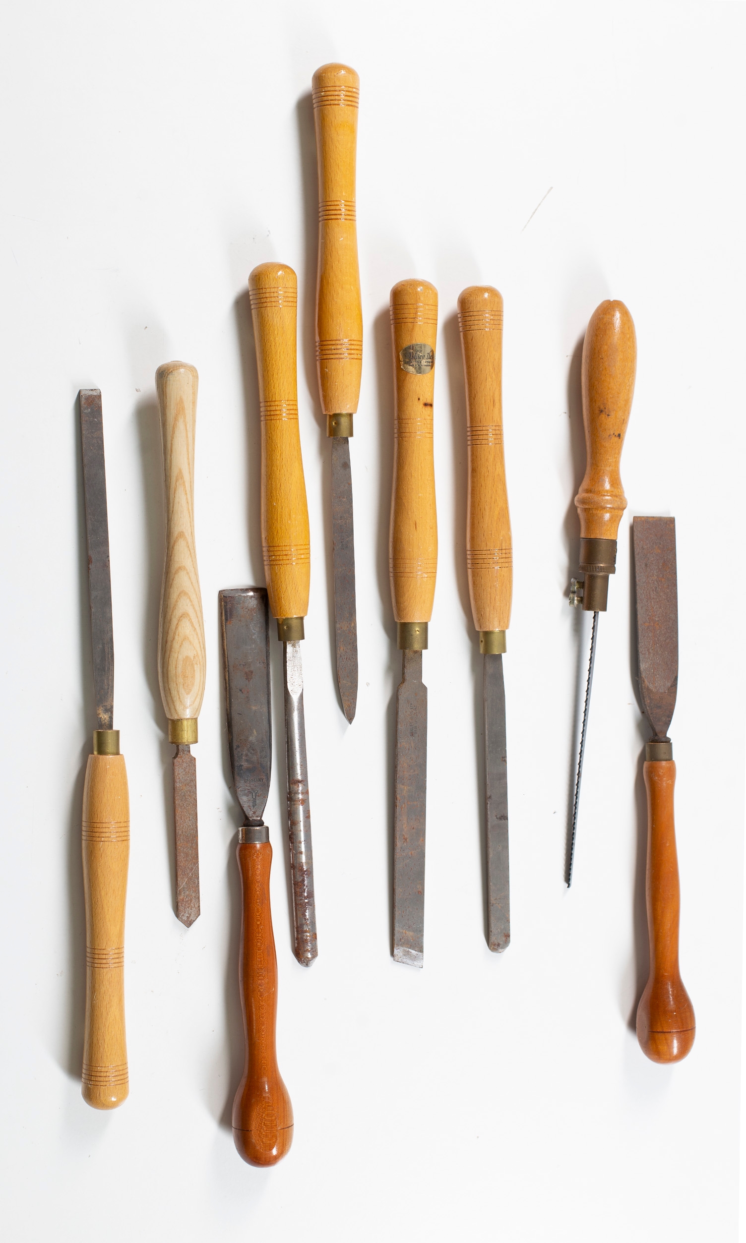 Eight chisels and one saw