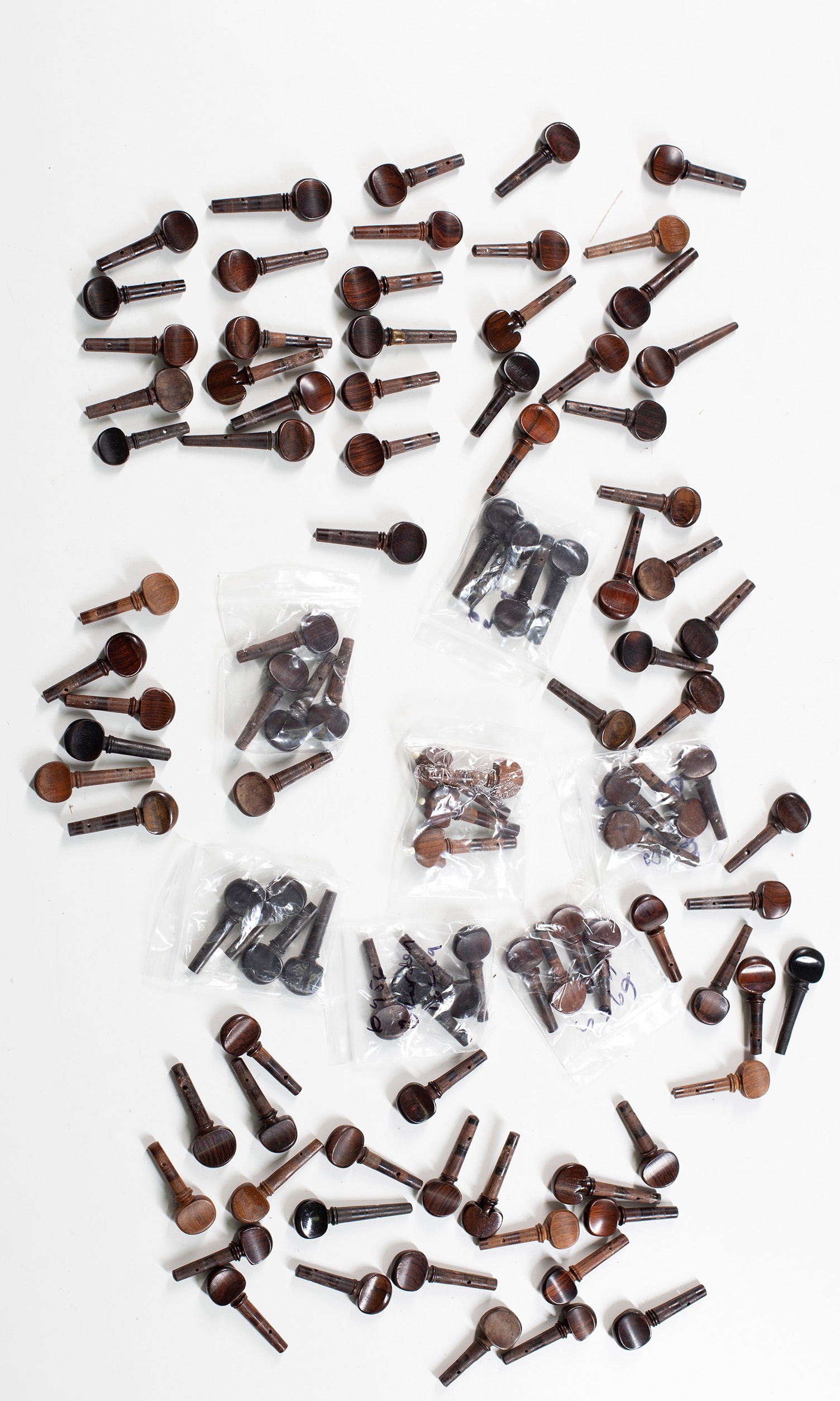 One hundred violin pegs, various sizes