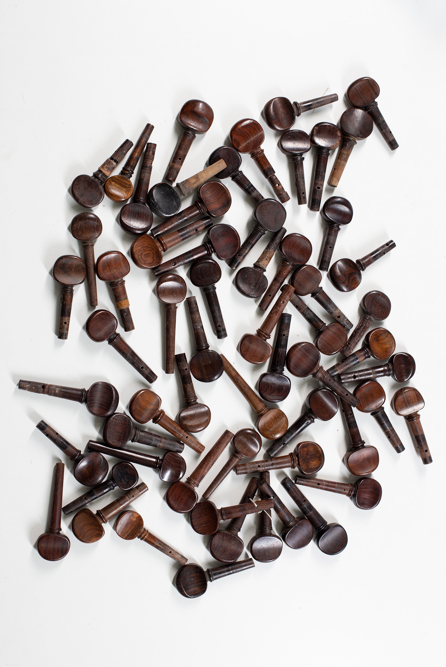 Sixty cello pegs, various sizes