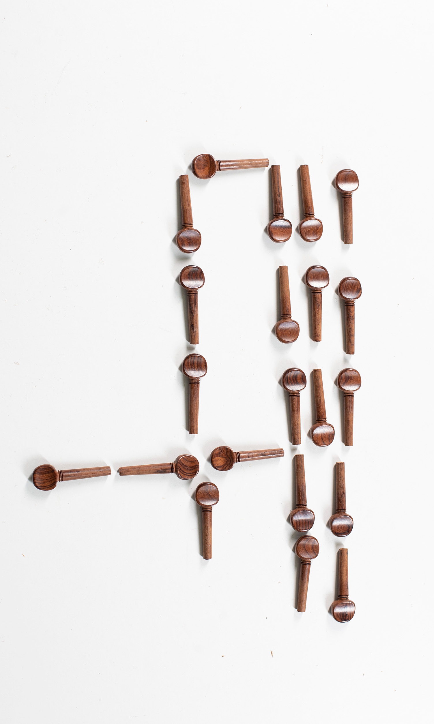 Twenty one violin pegs