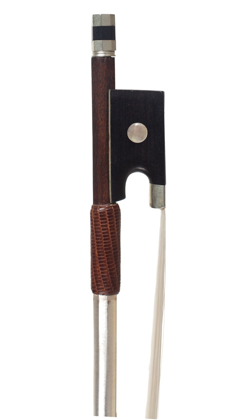 A nickel-mounted violin bow, unstamped