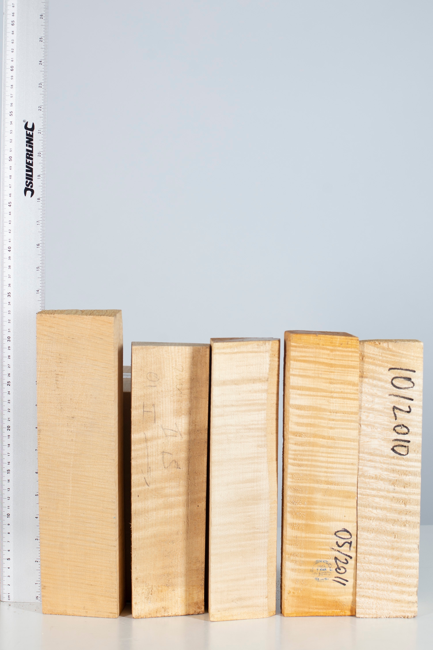 Five violin scroll blocks, maple