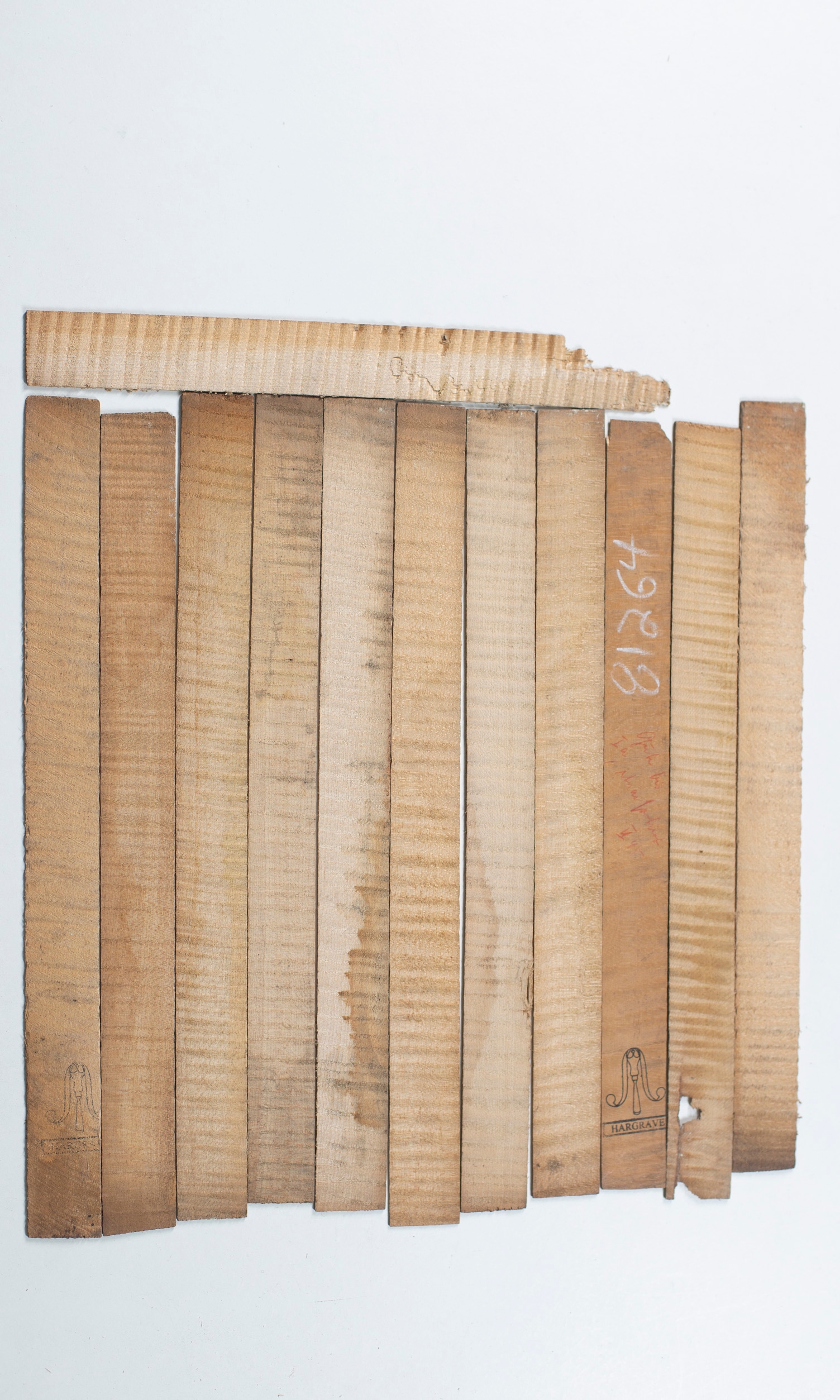 Twelve violin ribs, maple