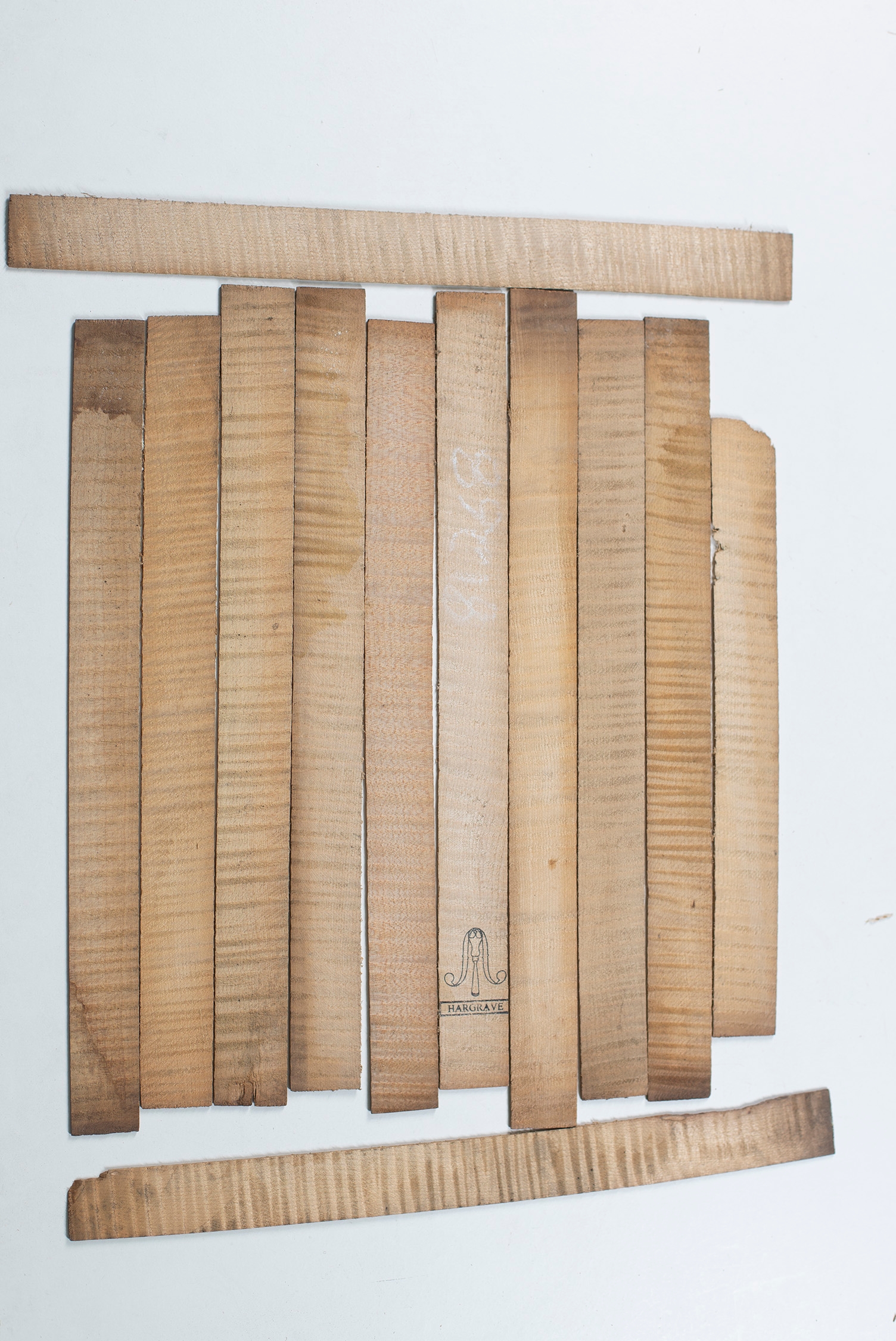 Twelve violin ribs, maple