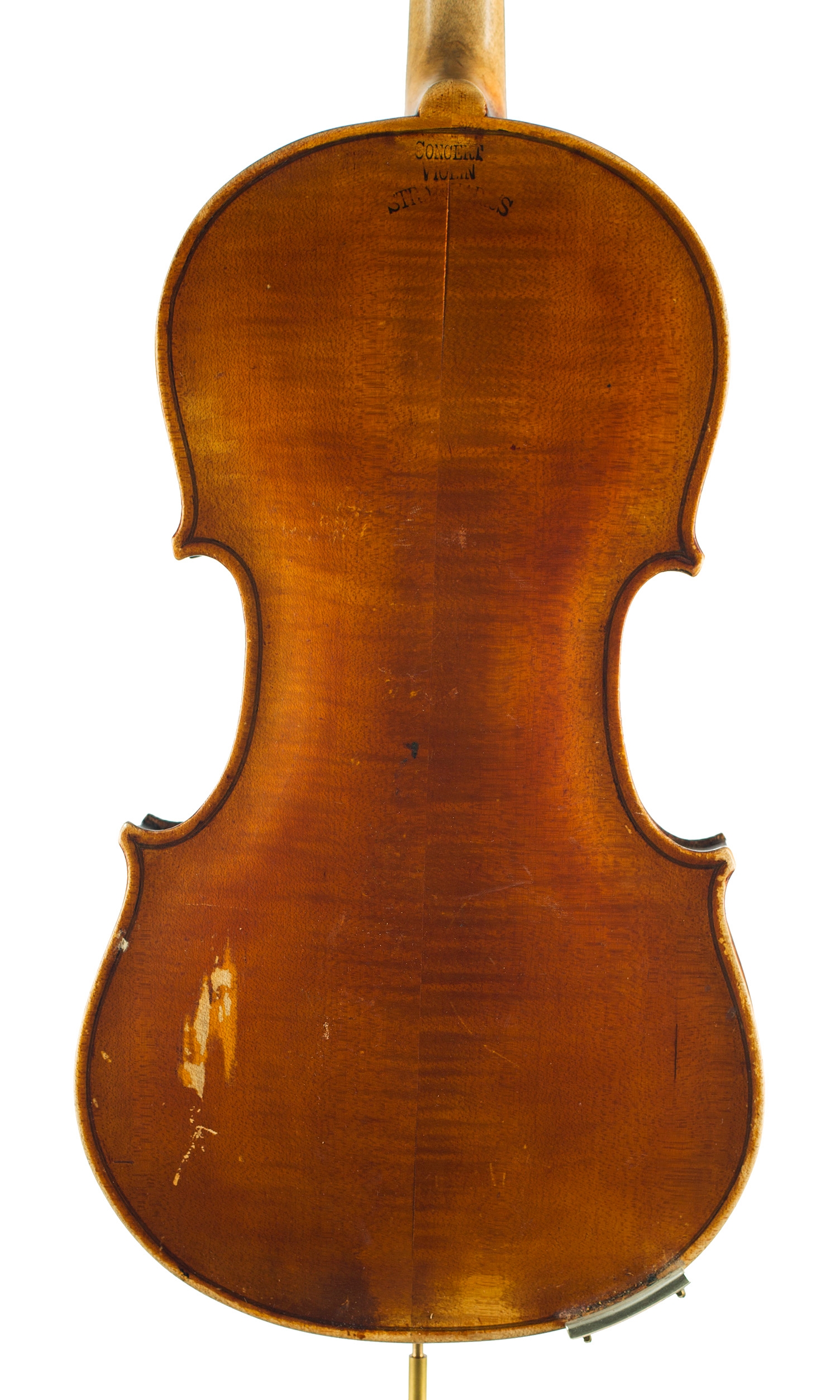 A violin, labelled Hand finished by Alfred Bowman