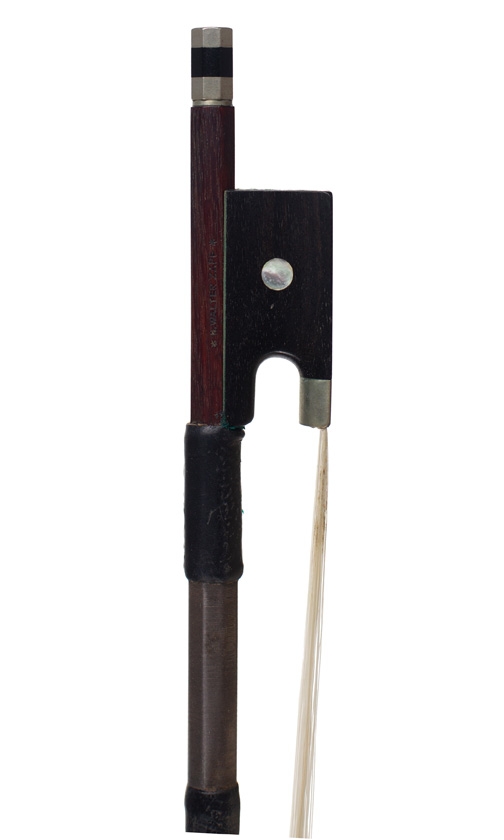 A nickel-mounted violin bow, stamped Walter Zapf