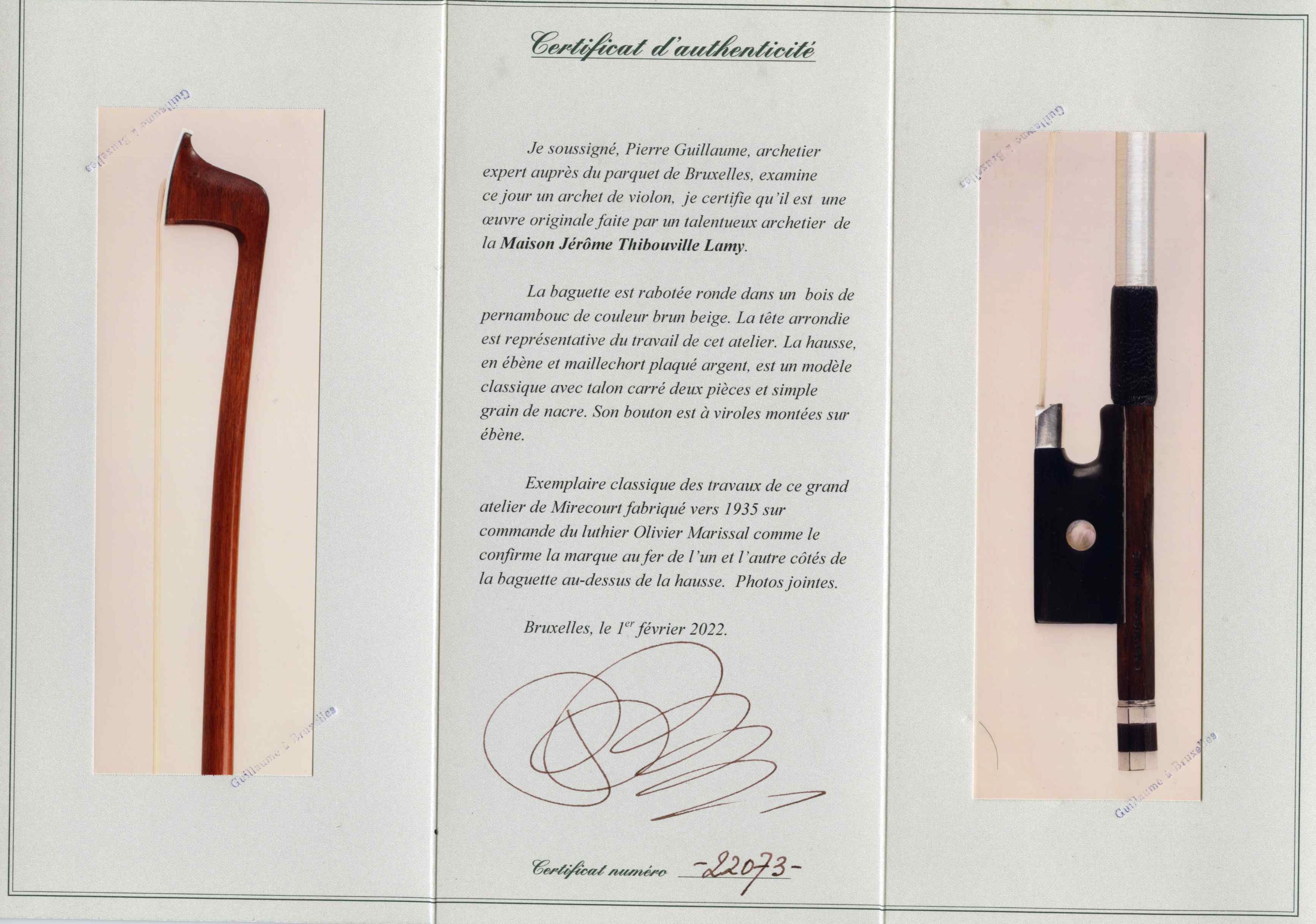 Sold with a certificate of P. Guillaume, Brussels, 2022