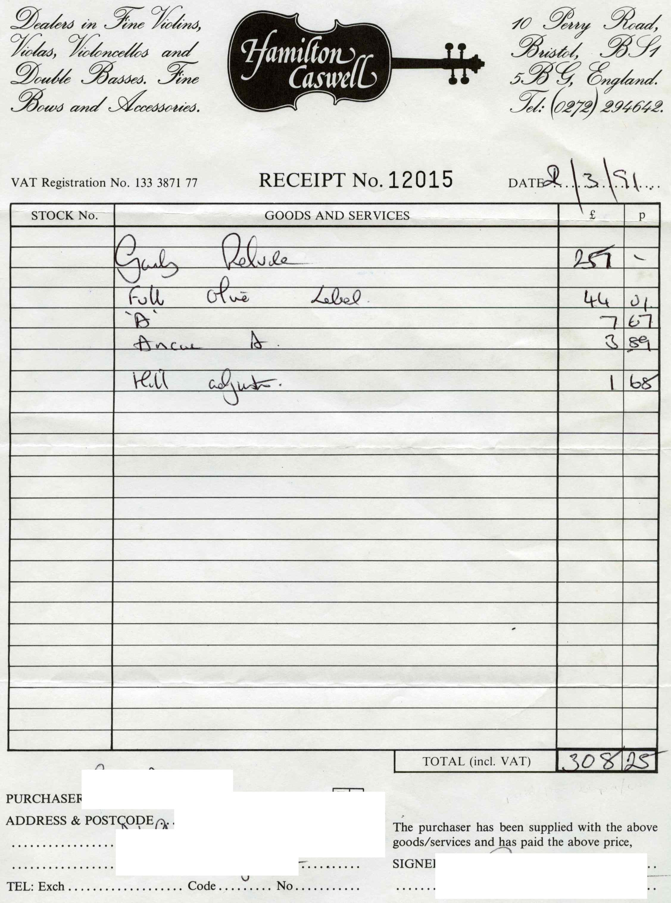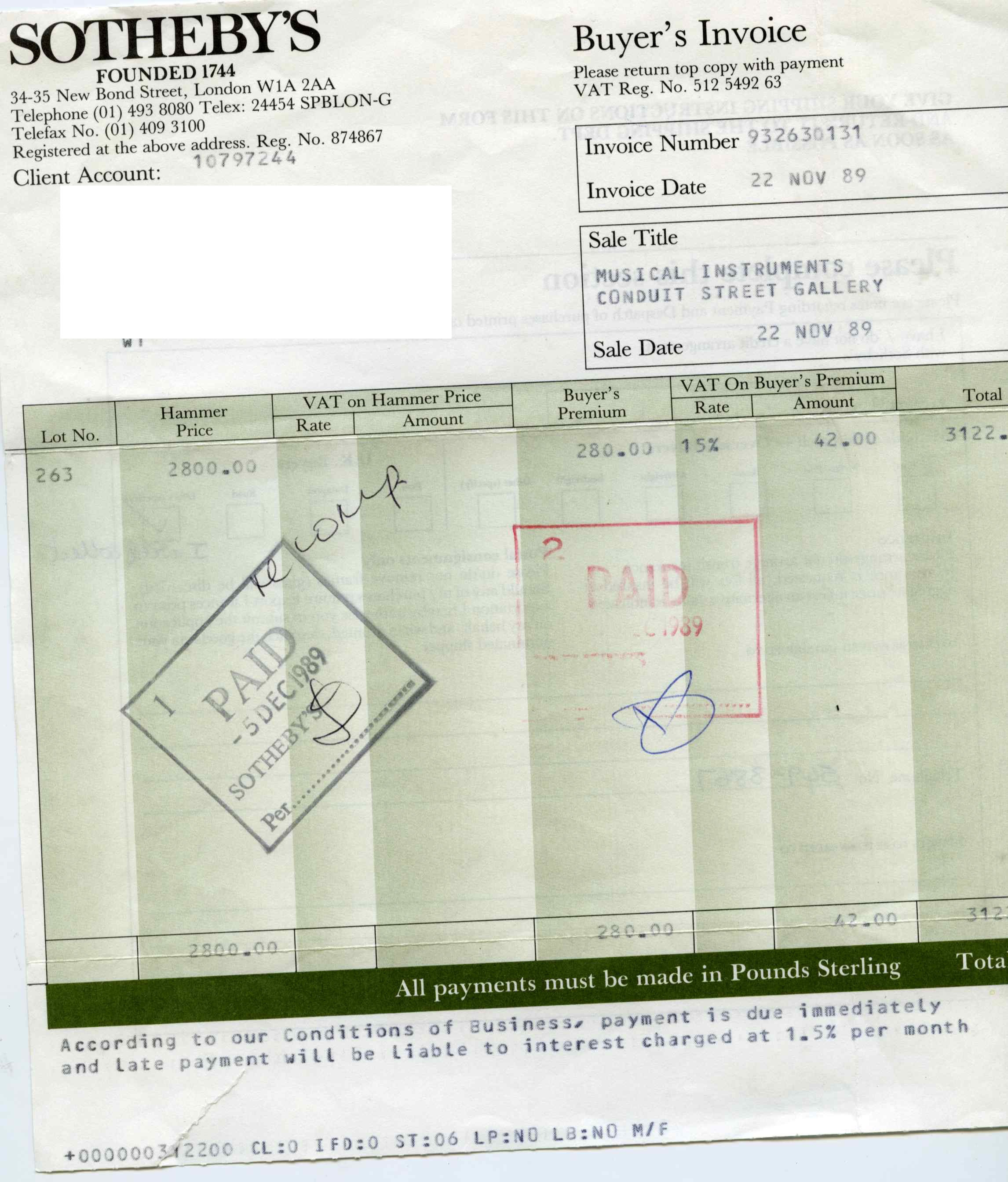Sold with a receipt from Sotheby's, London, 1989