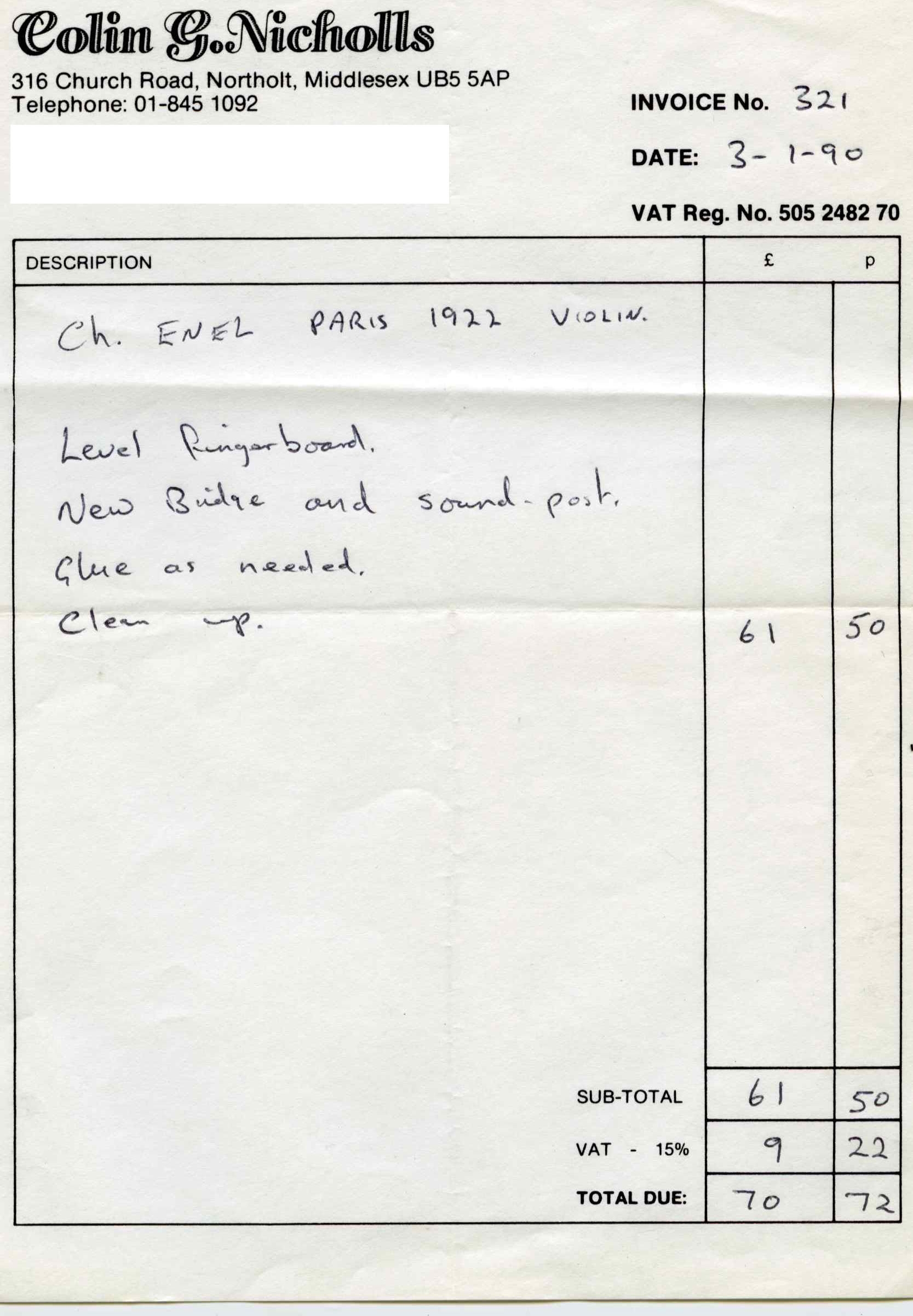 A violin, Workshop of Charles Enel, Paris, 1922