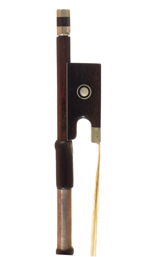 A nickel-mounted violin bow, branded Henry