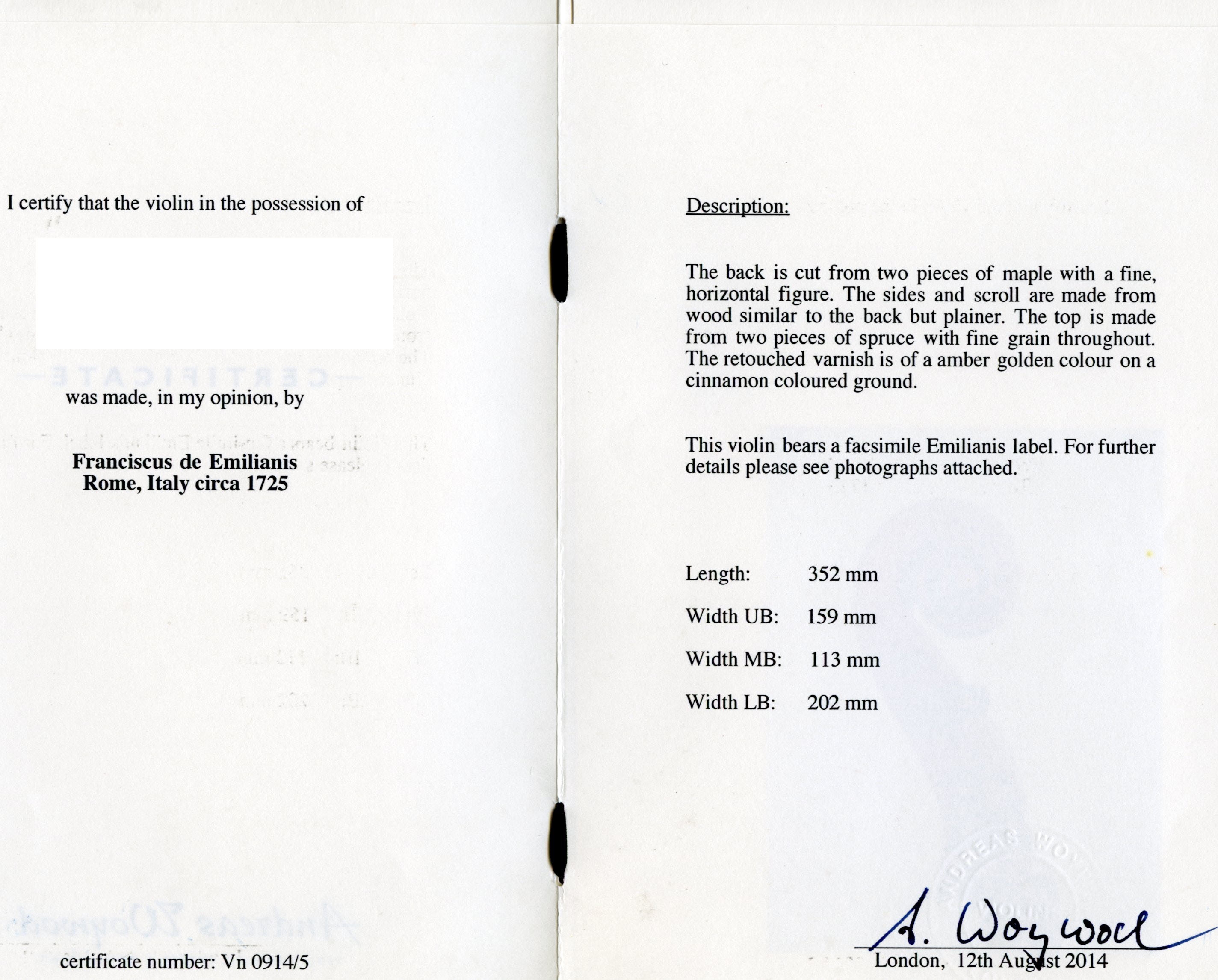 | Single Violin | £55 | £76 | £104 | £145 |