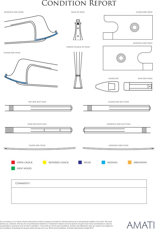 A silver-mounted violin bow, unbranded