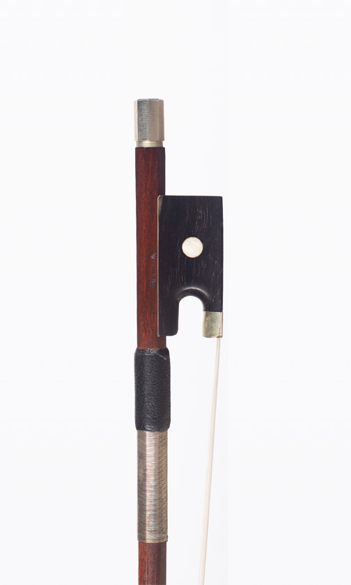 A nickel-mounted violin bow, Workshop of Bazin, Mirecourt