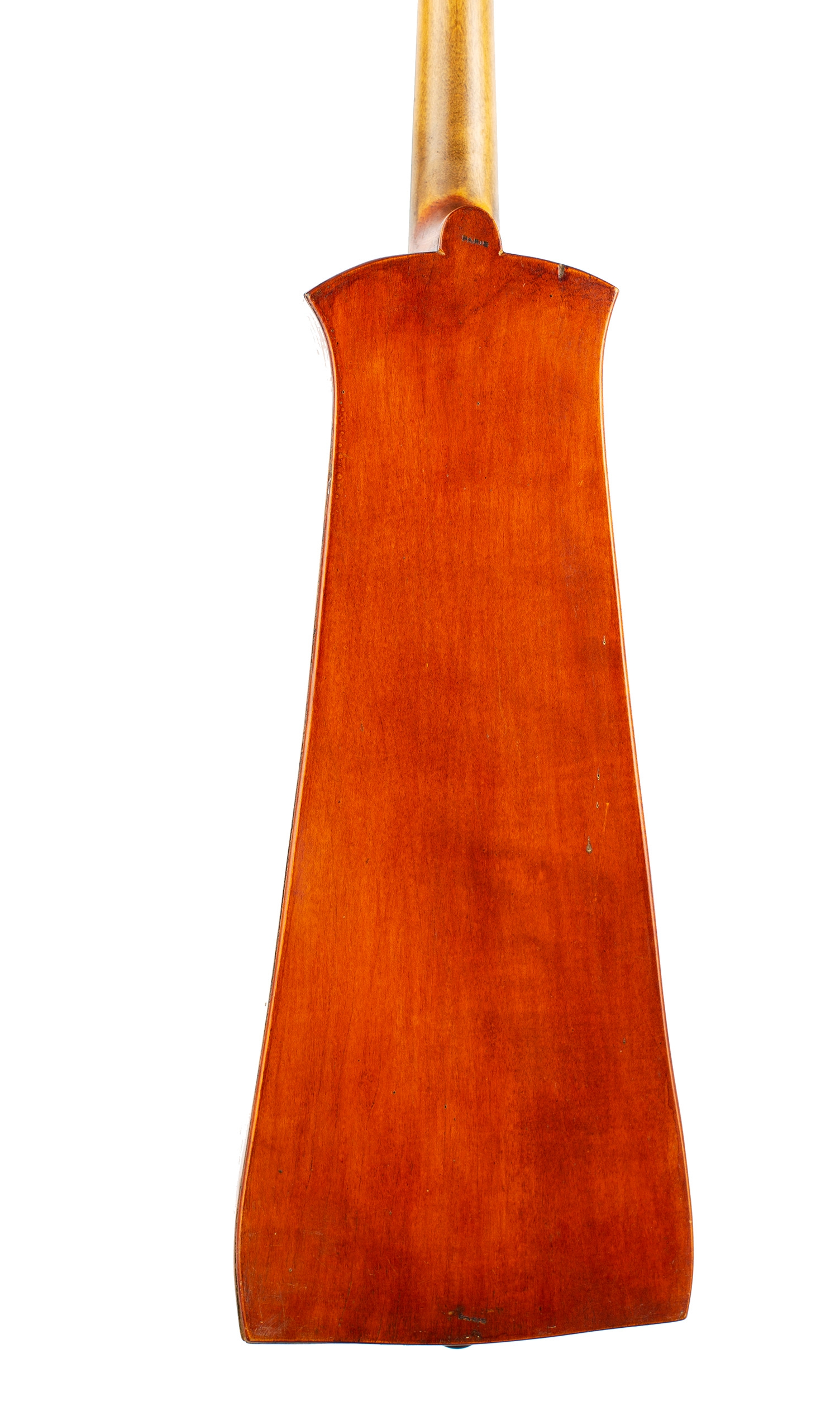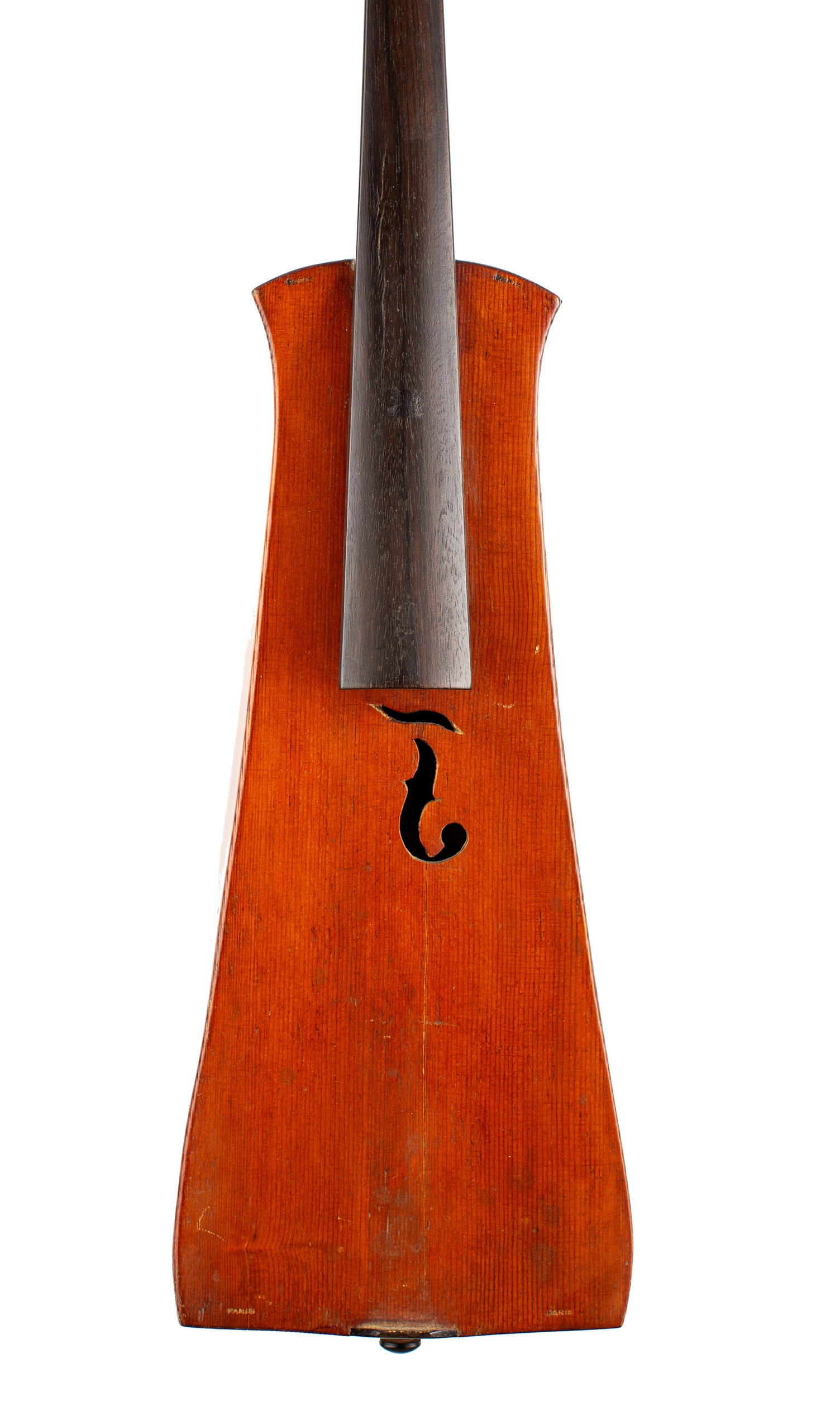 A rectangular violin, labelled Fajot