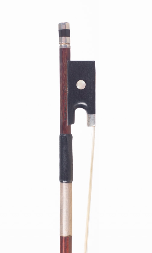 A silver-mounted violin bow, branded L. Herrmann