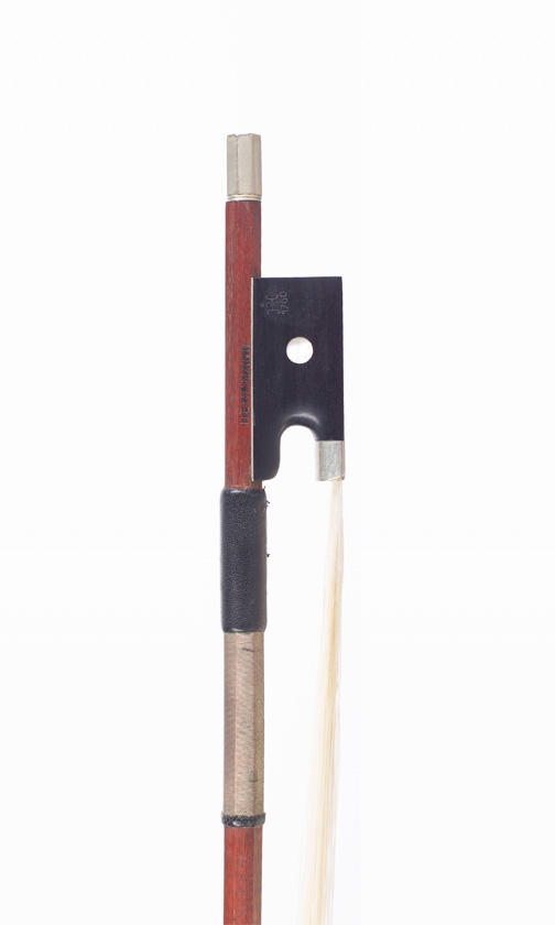 A nickel-mounted viola bow, branded Herrmann