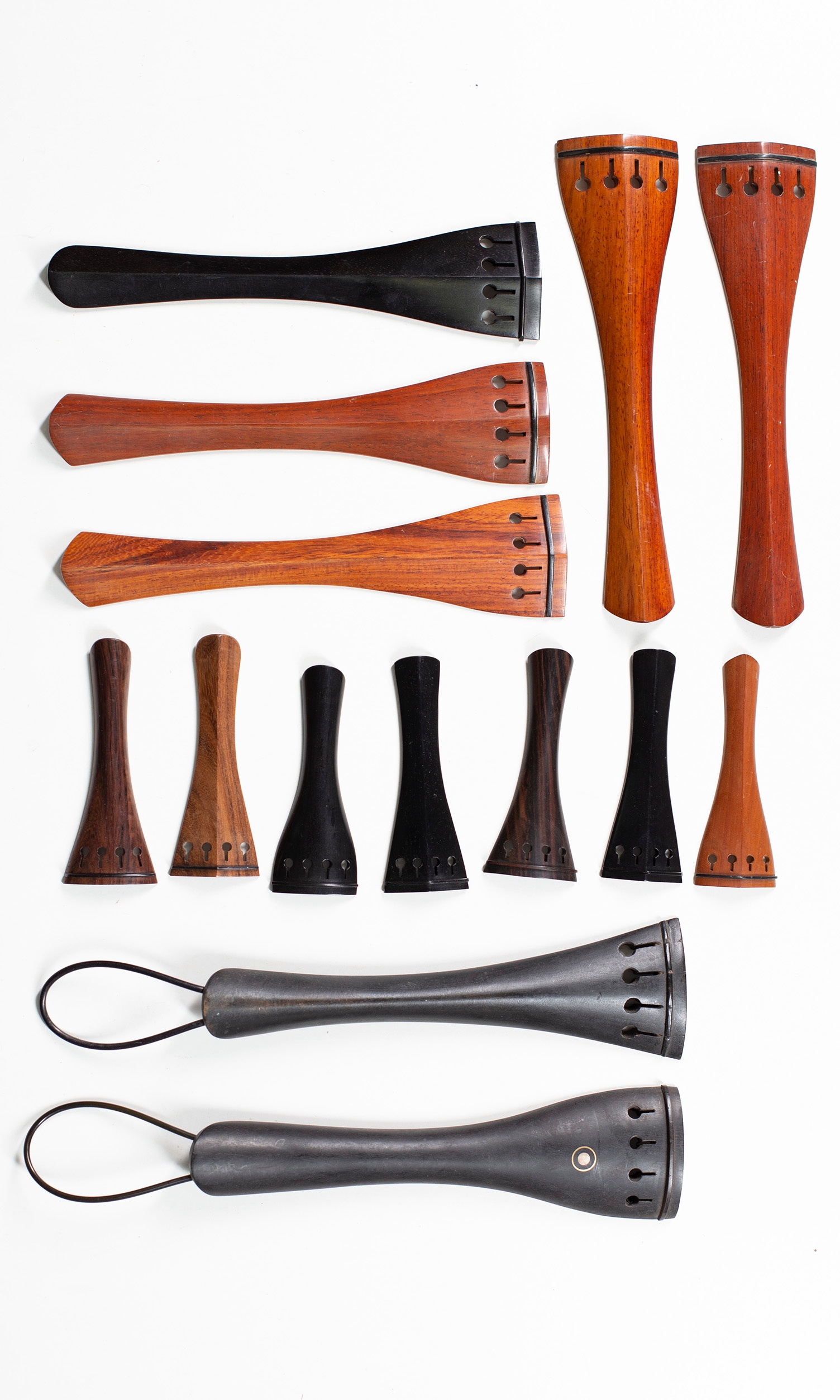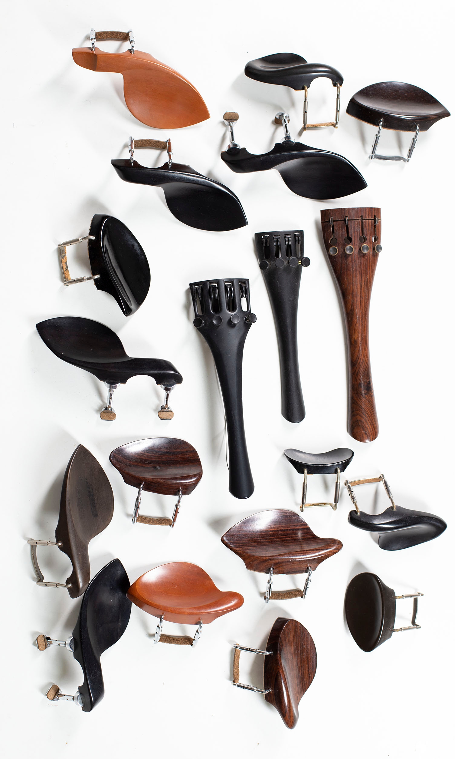 A small quantity of tailpieces and chinrest, various sizes