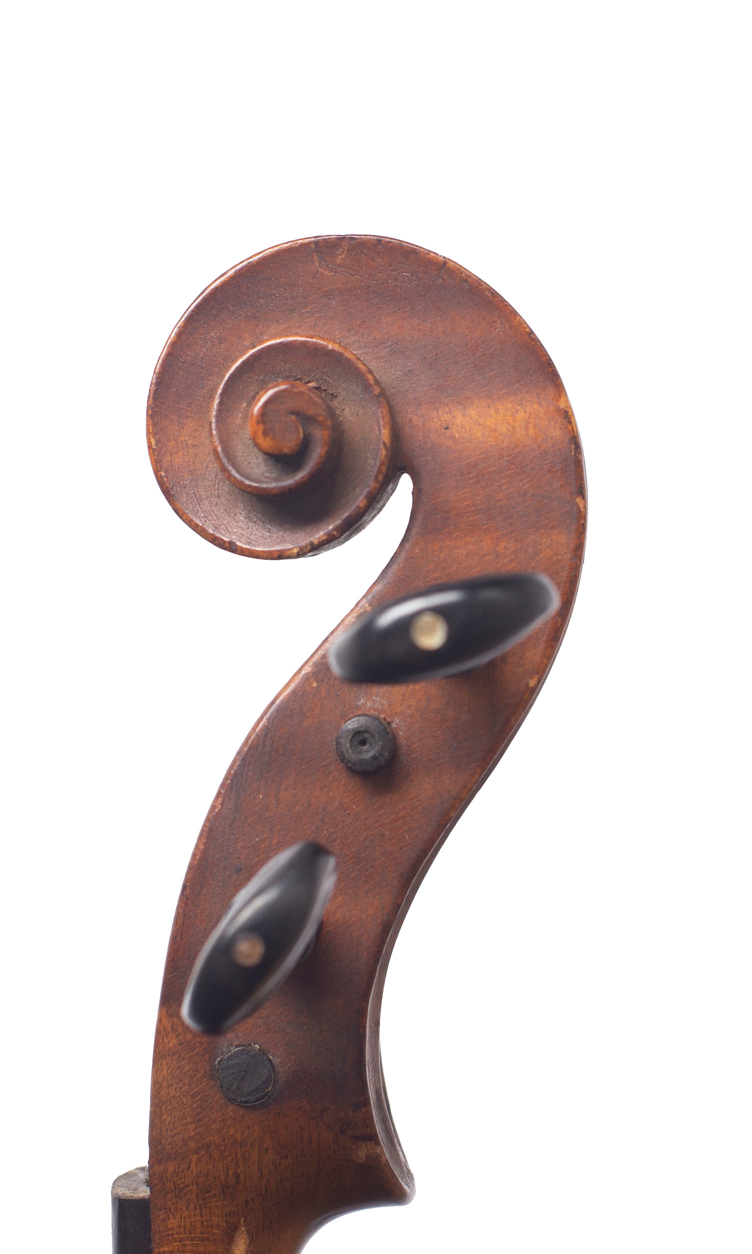 A violin labelled, Repaired by S. M. Briggs