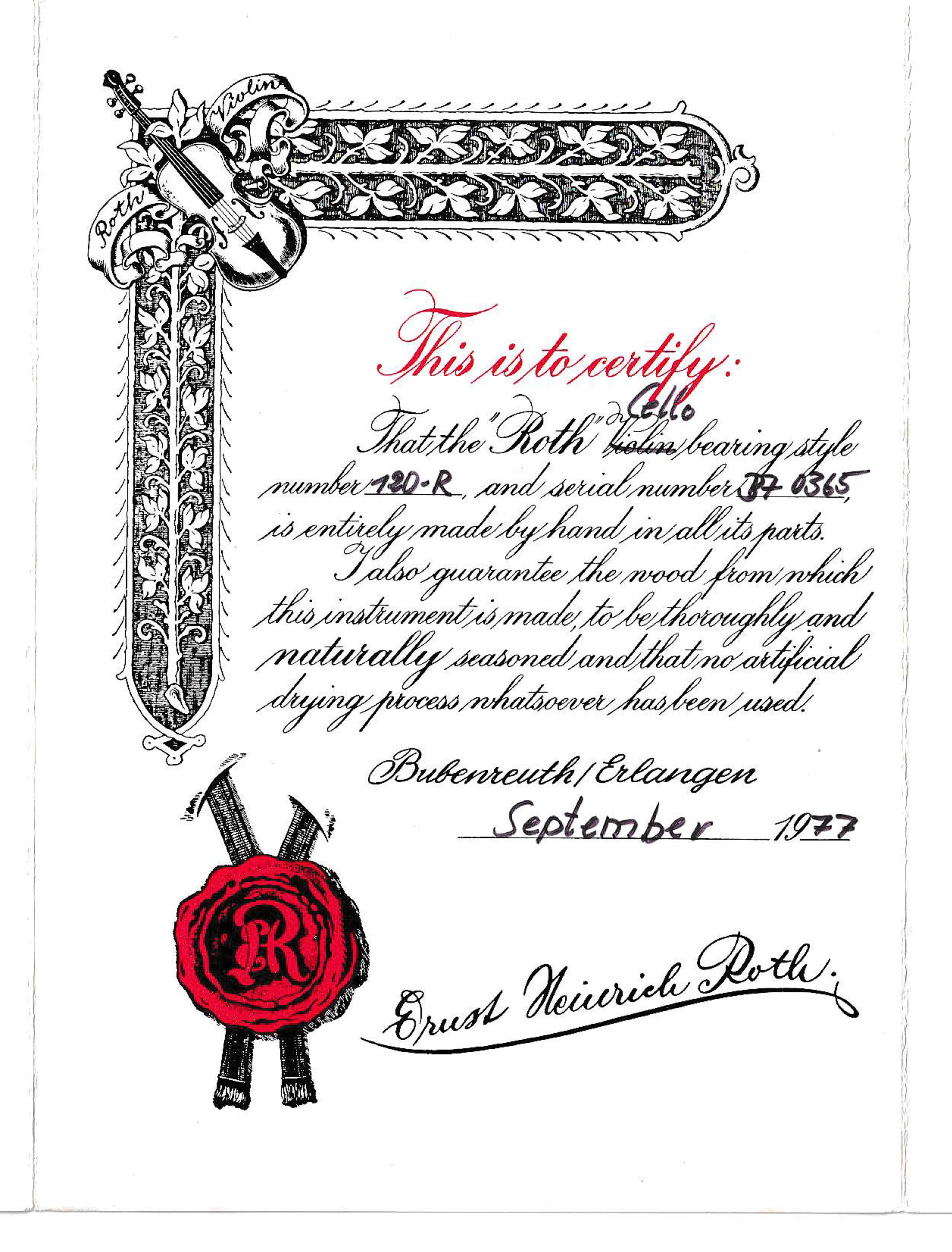 Sold with the certificate of Ernst Heinrich Roth, Bubenreuth, September 1977