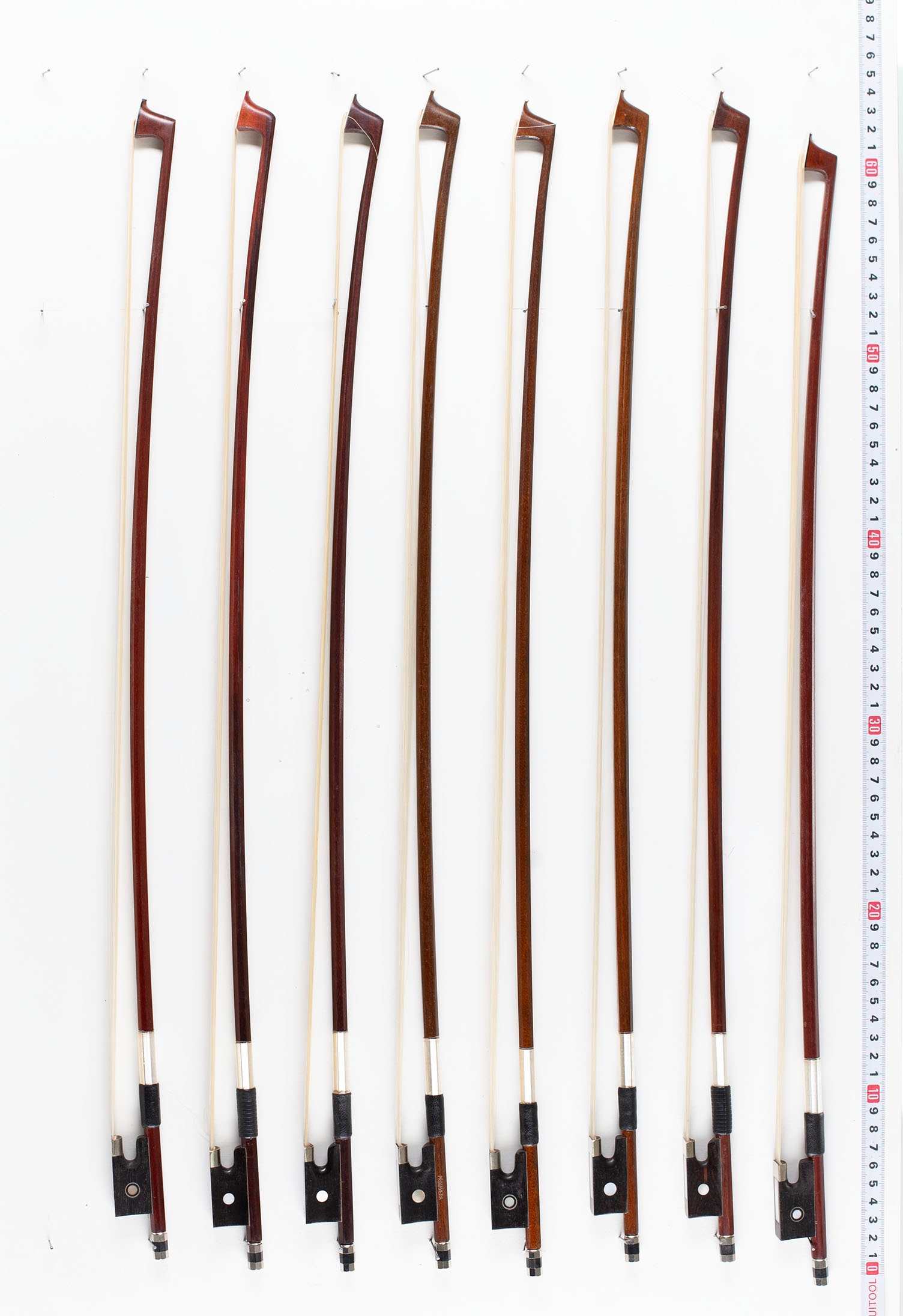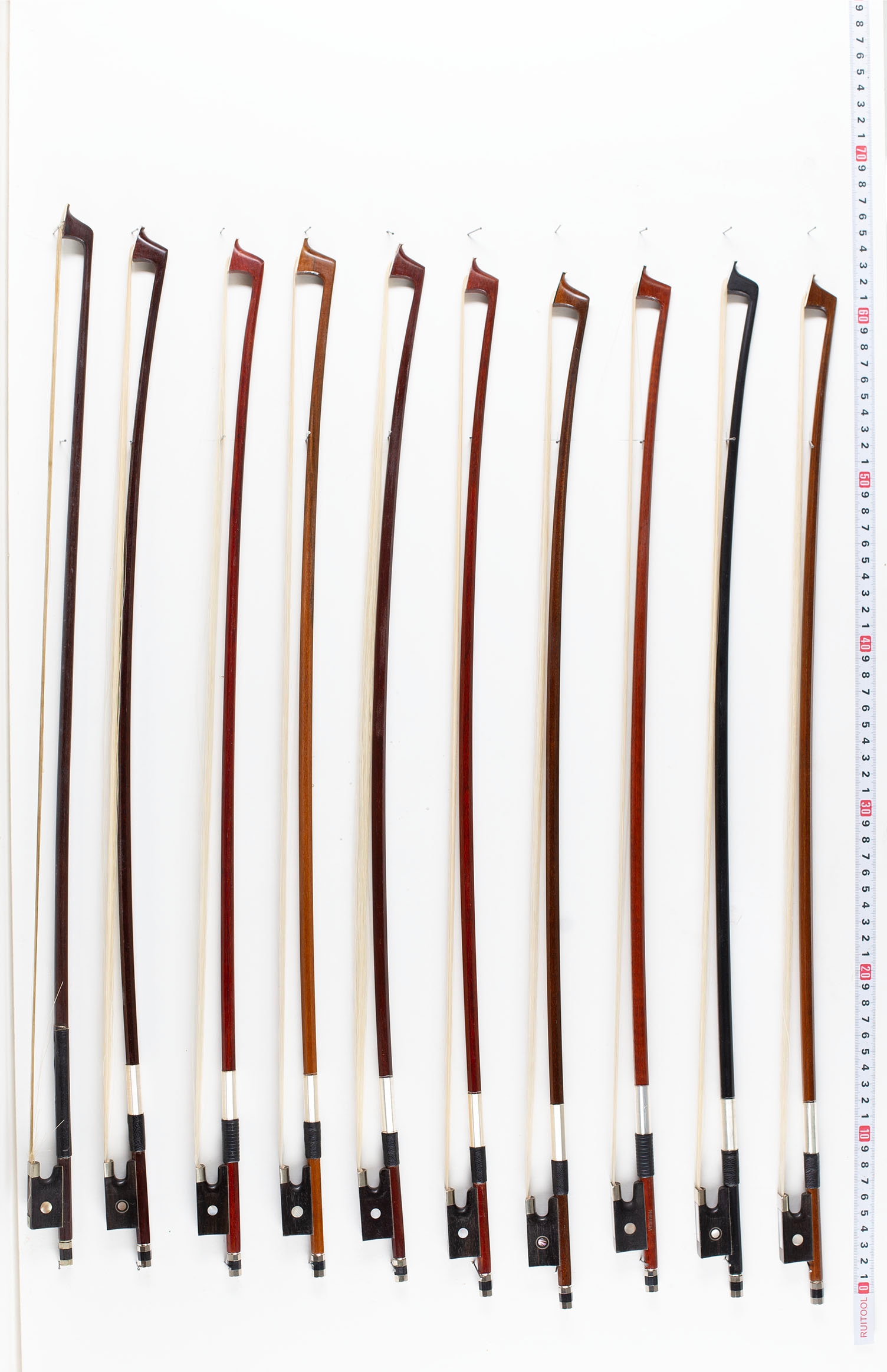 Eighteen child-sized violin bows, various lengths