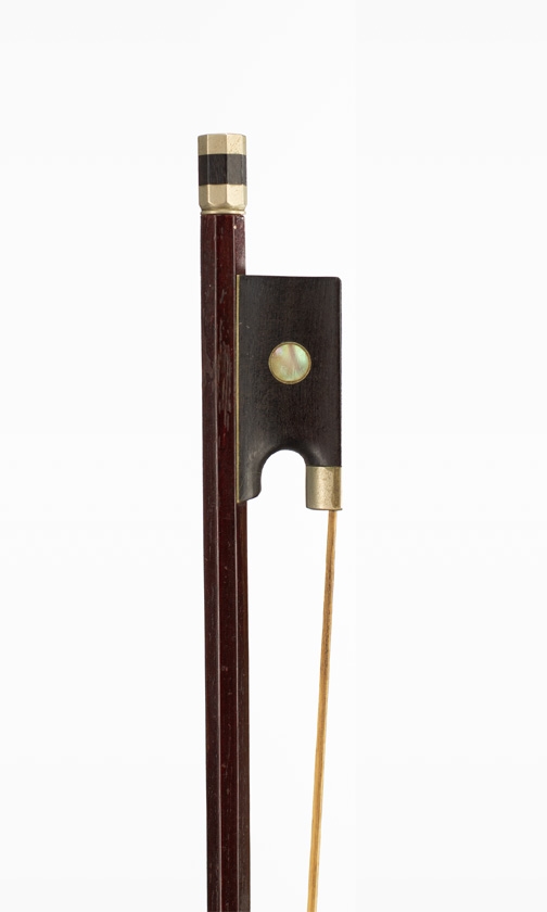 A nickel-mounted violin bow, branded Dodd
