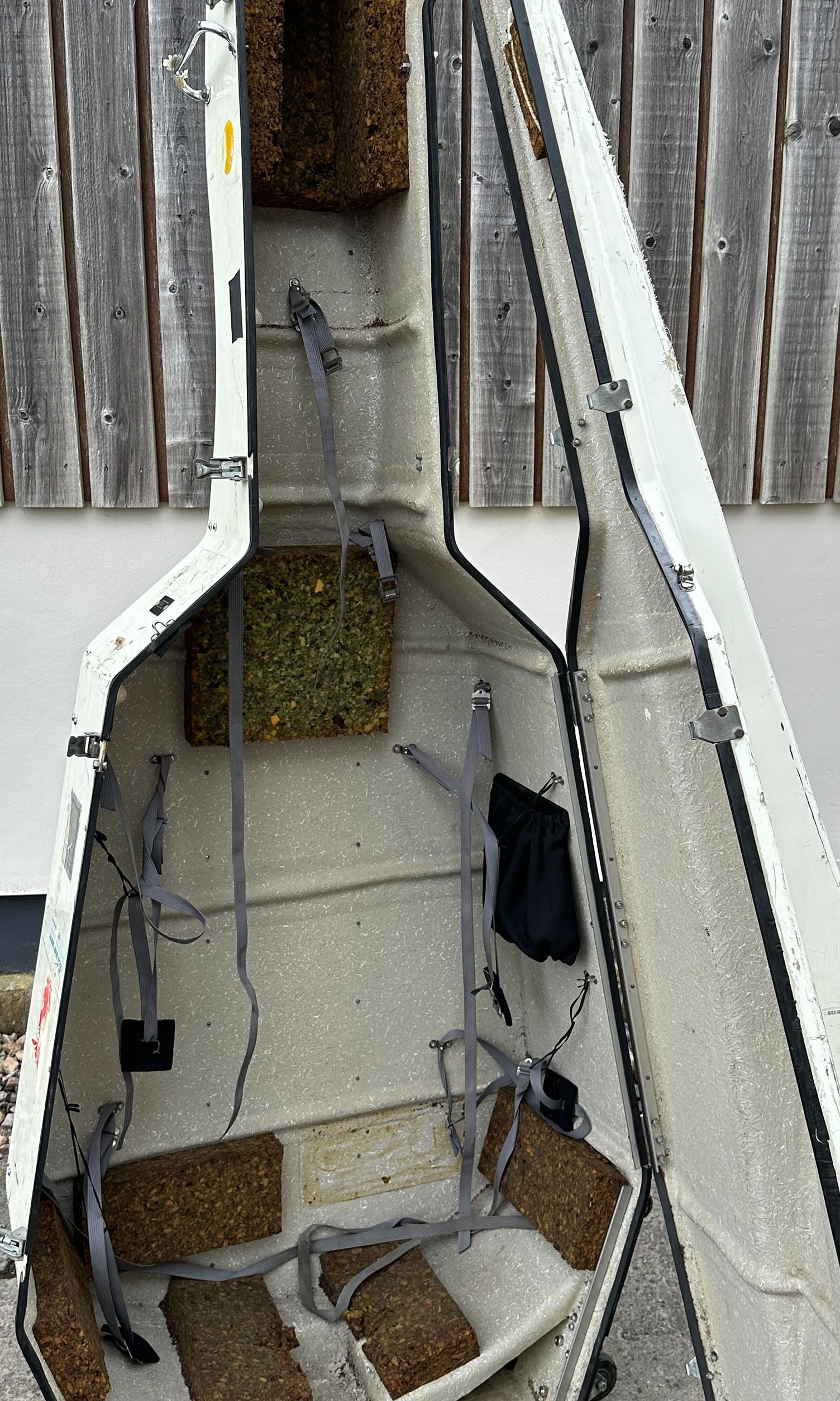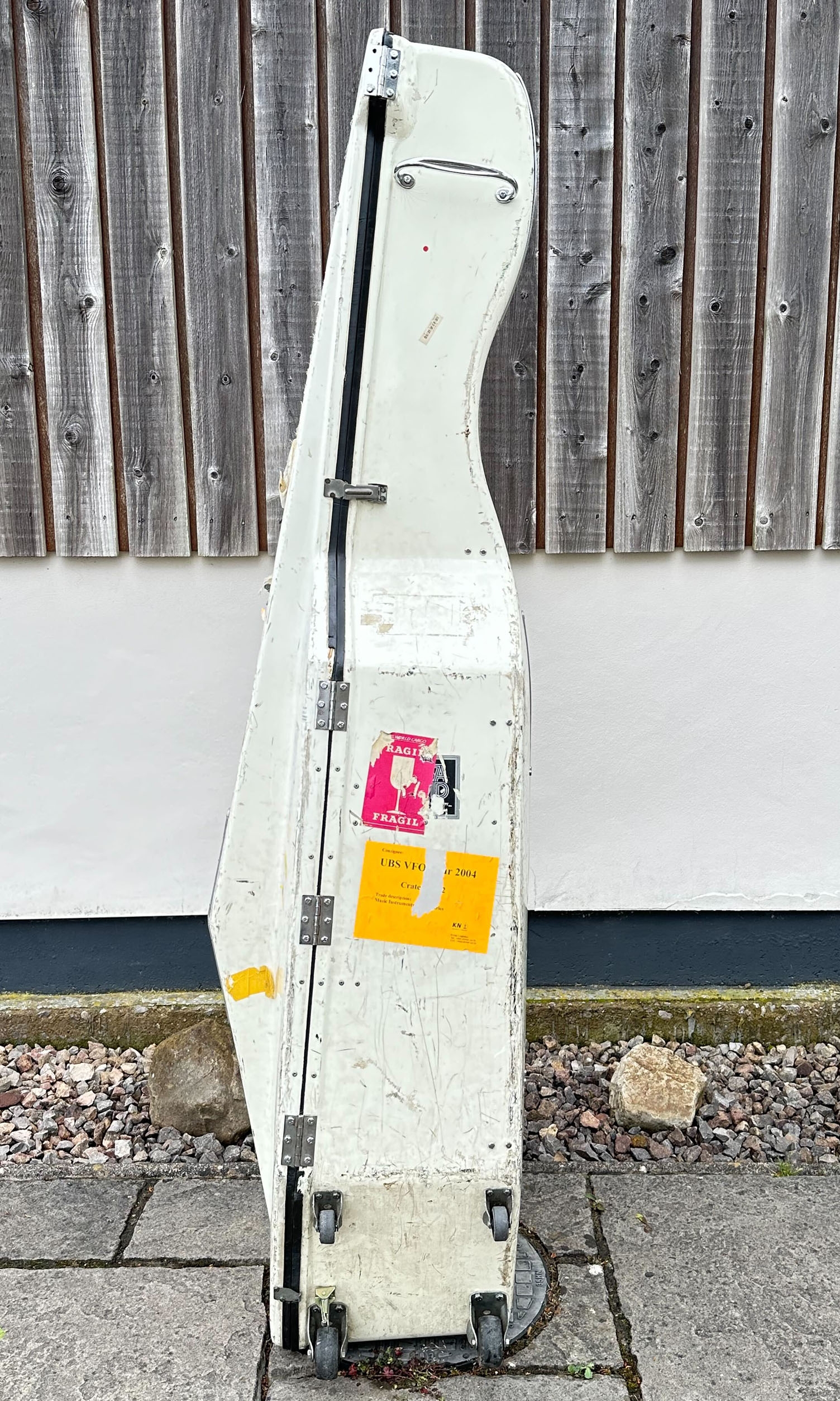 A double bass case, branded Stevenson