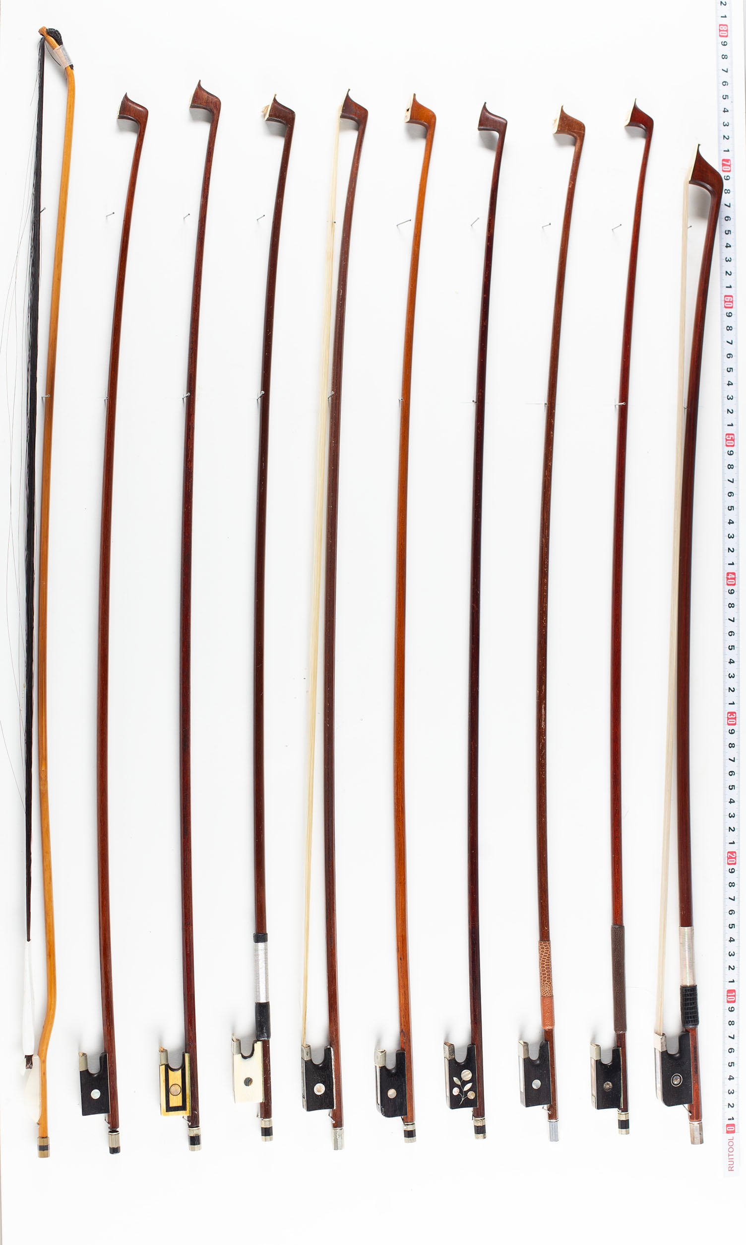A bundle of twenty bows, varying lengths