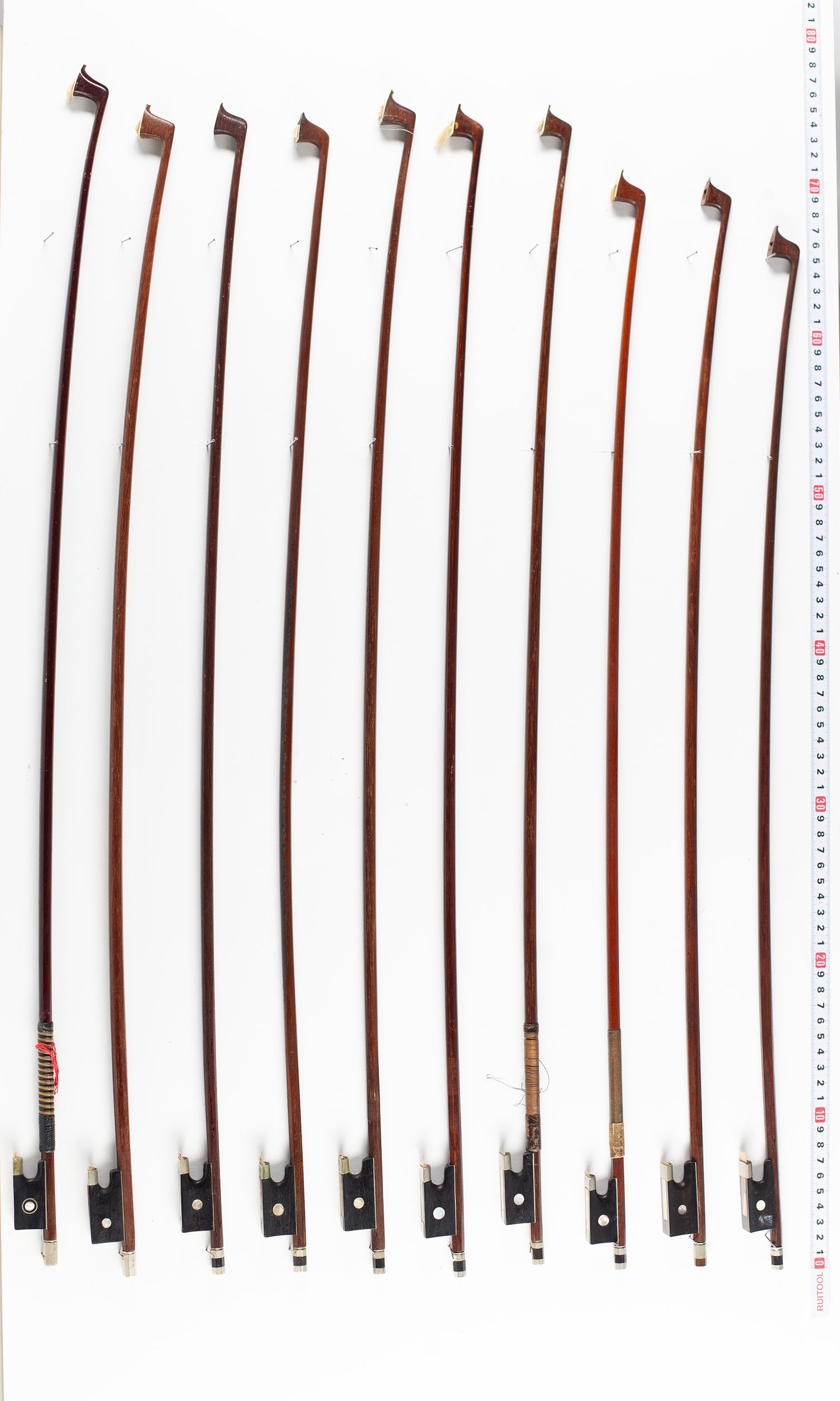 A bundle of twenty bows, varying lengths