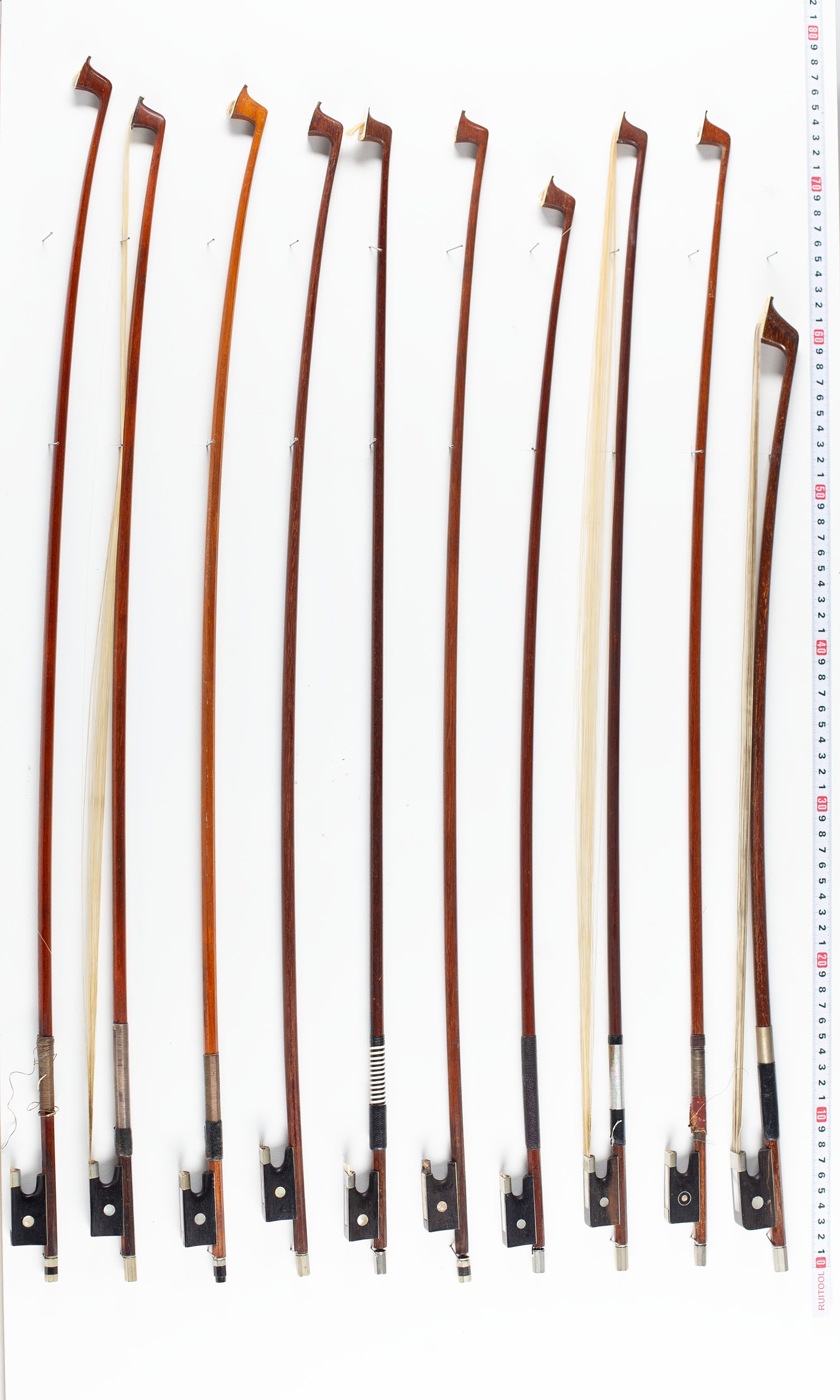 A bundle of twenty bows, varying lengths