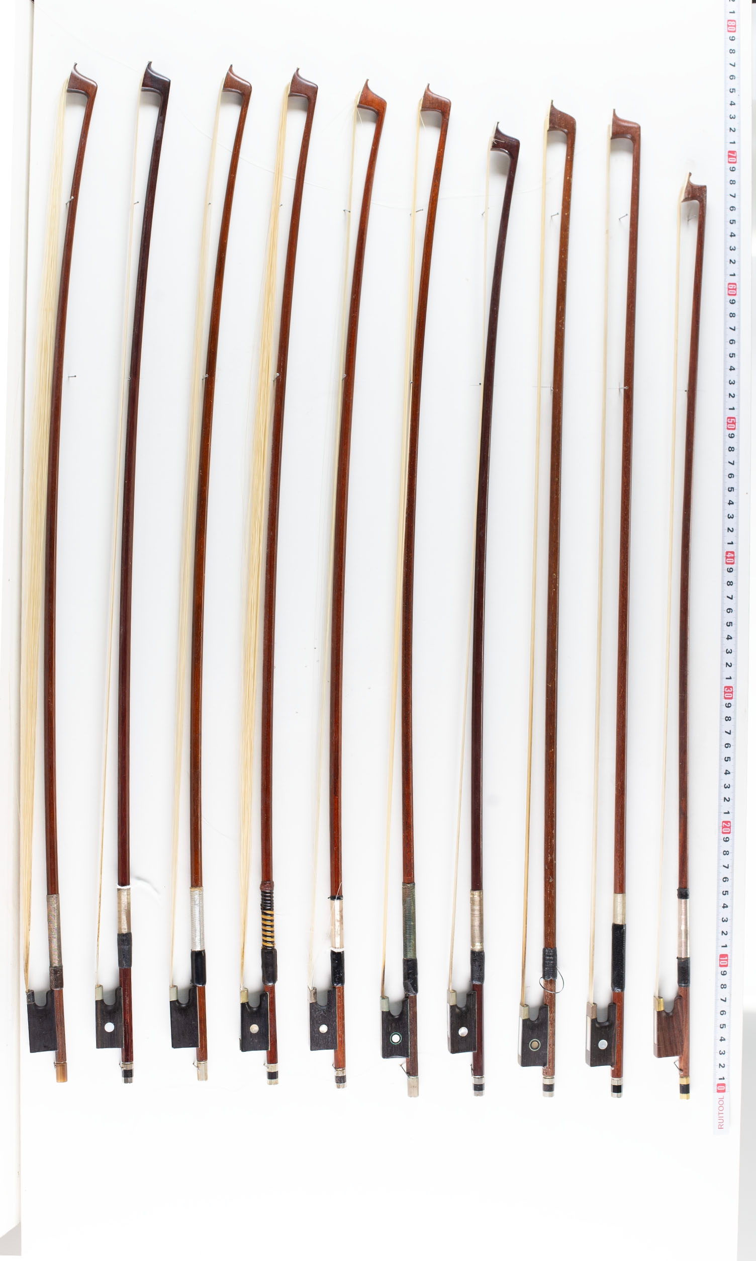 A bundle of twenty bows, varying lengths