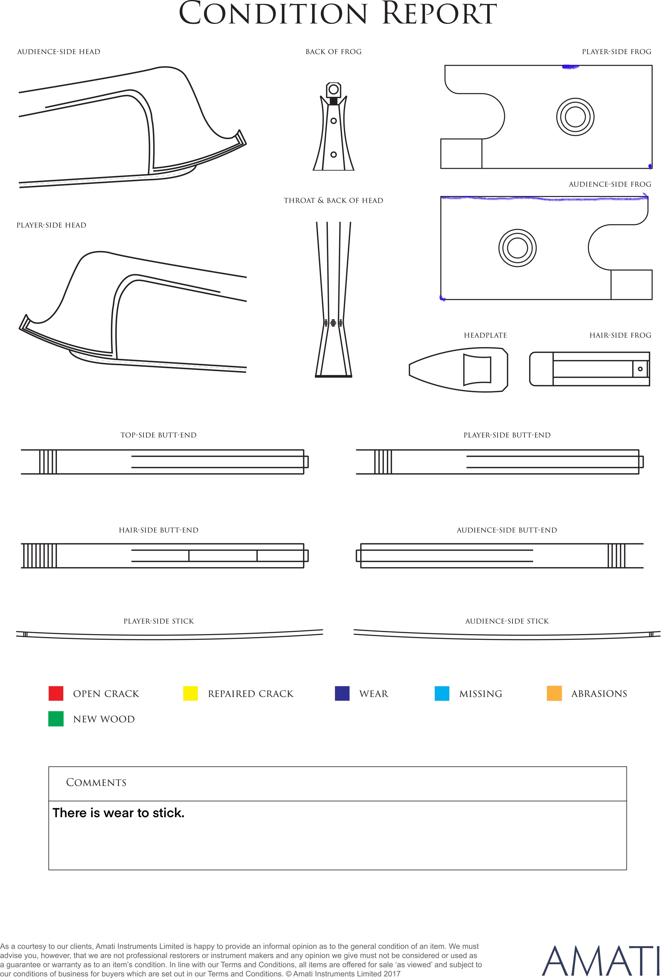 A nickel-mounted violin bow