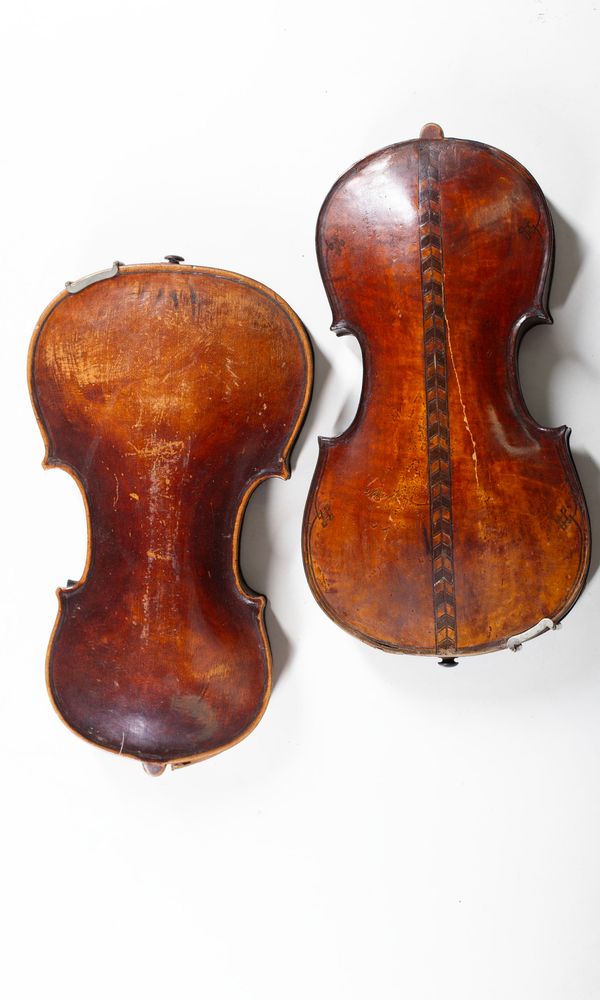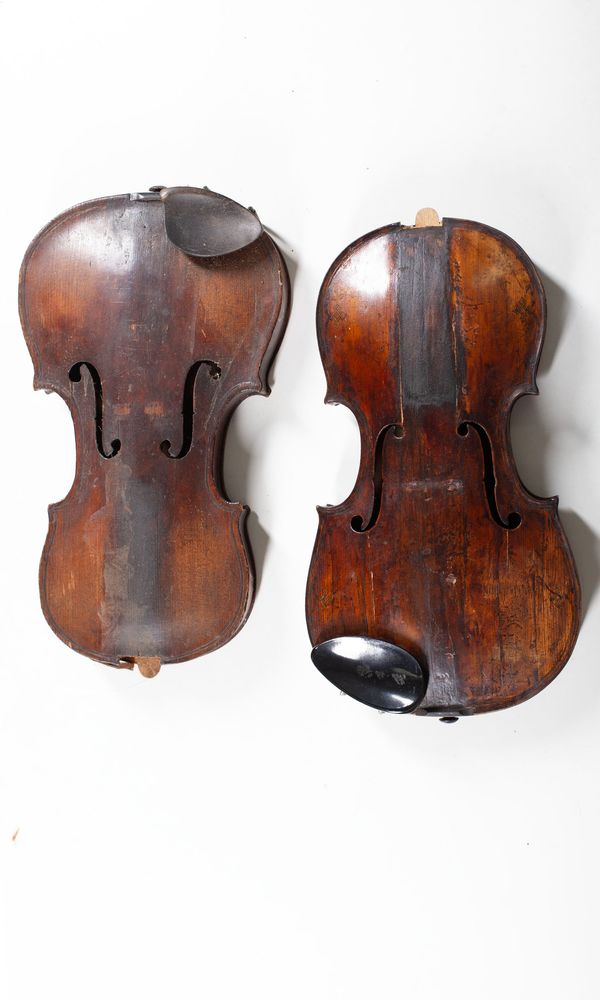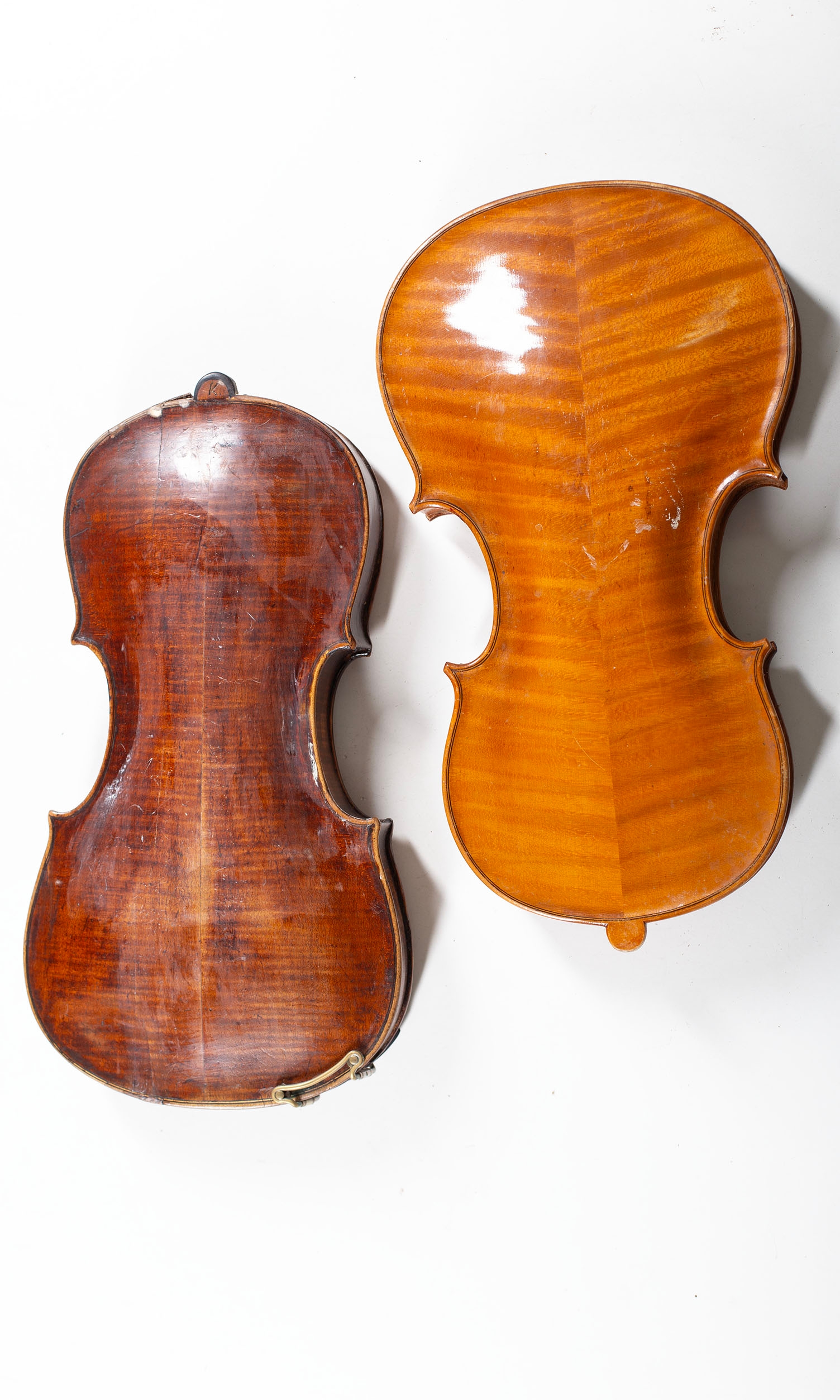 Five violin bodies, varying sizes