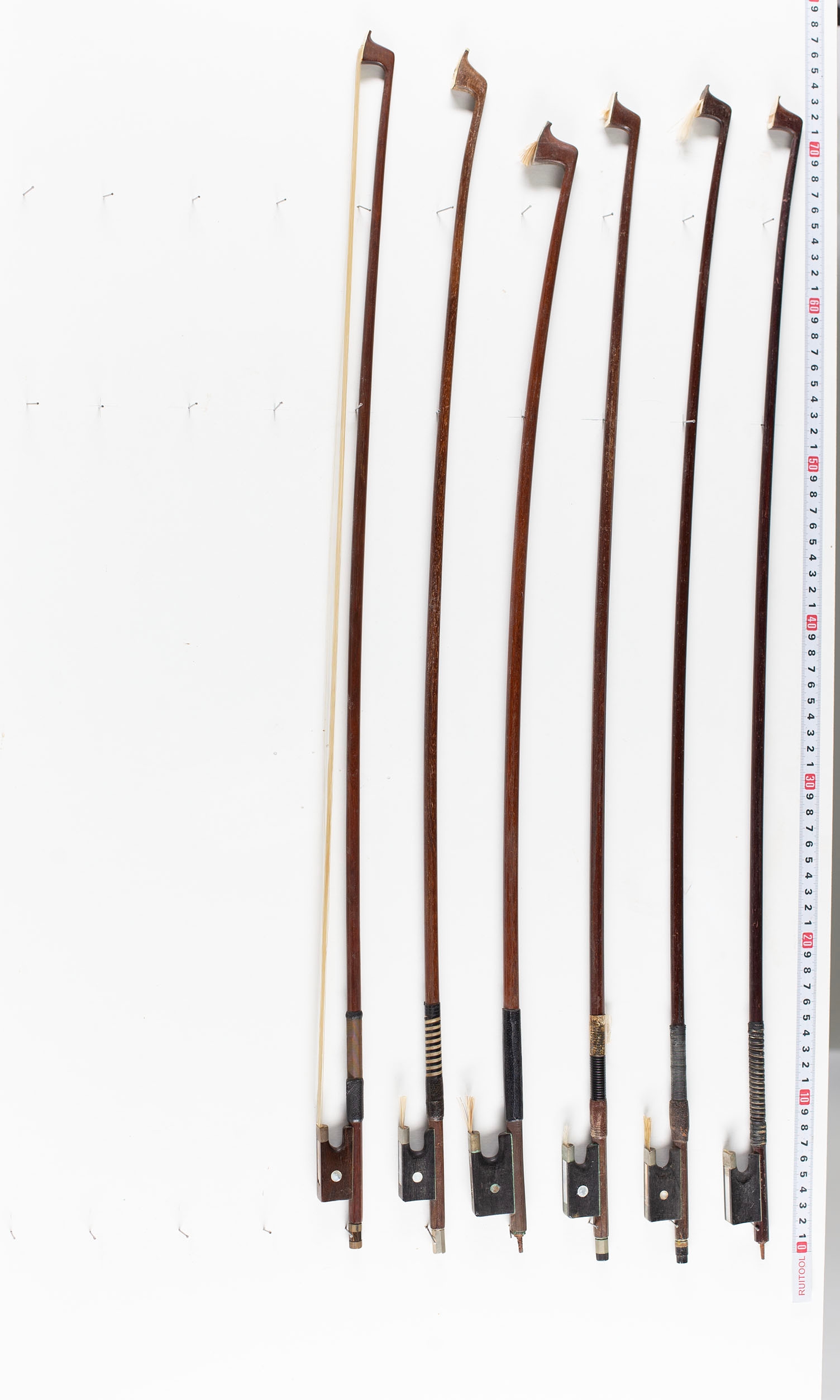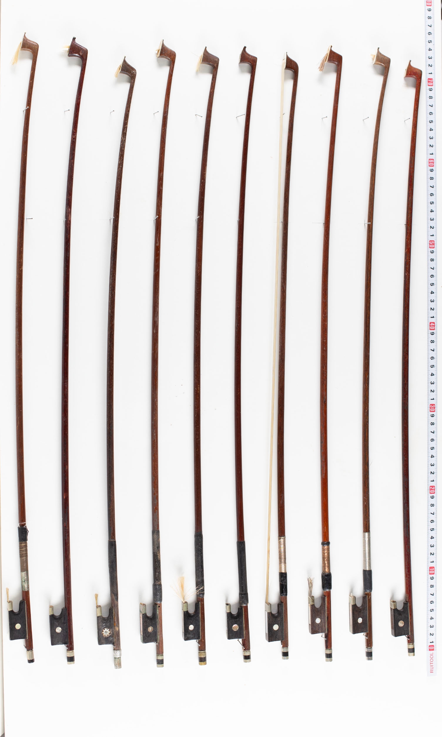 A bundle of sixteen violin bows, varying sizes