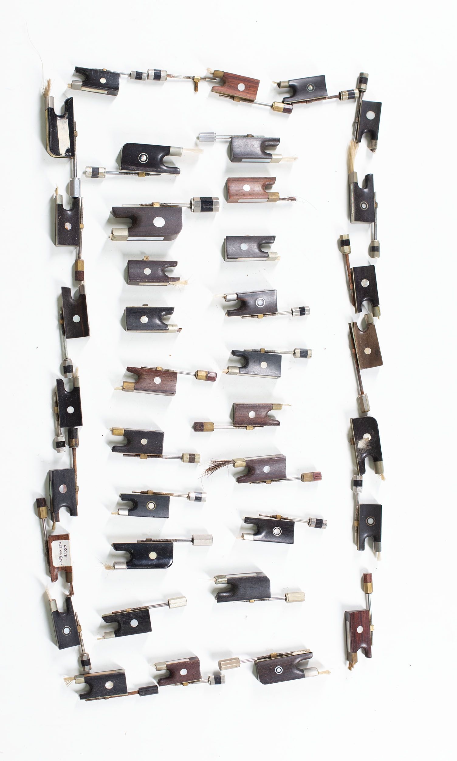 A bundle of bow frogs, varying sizes