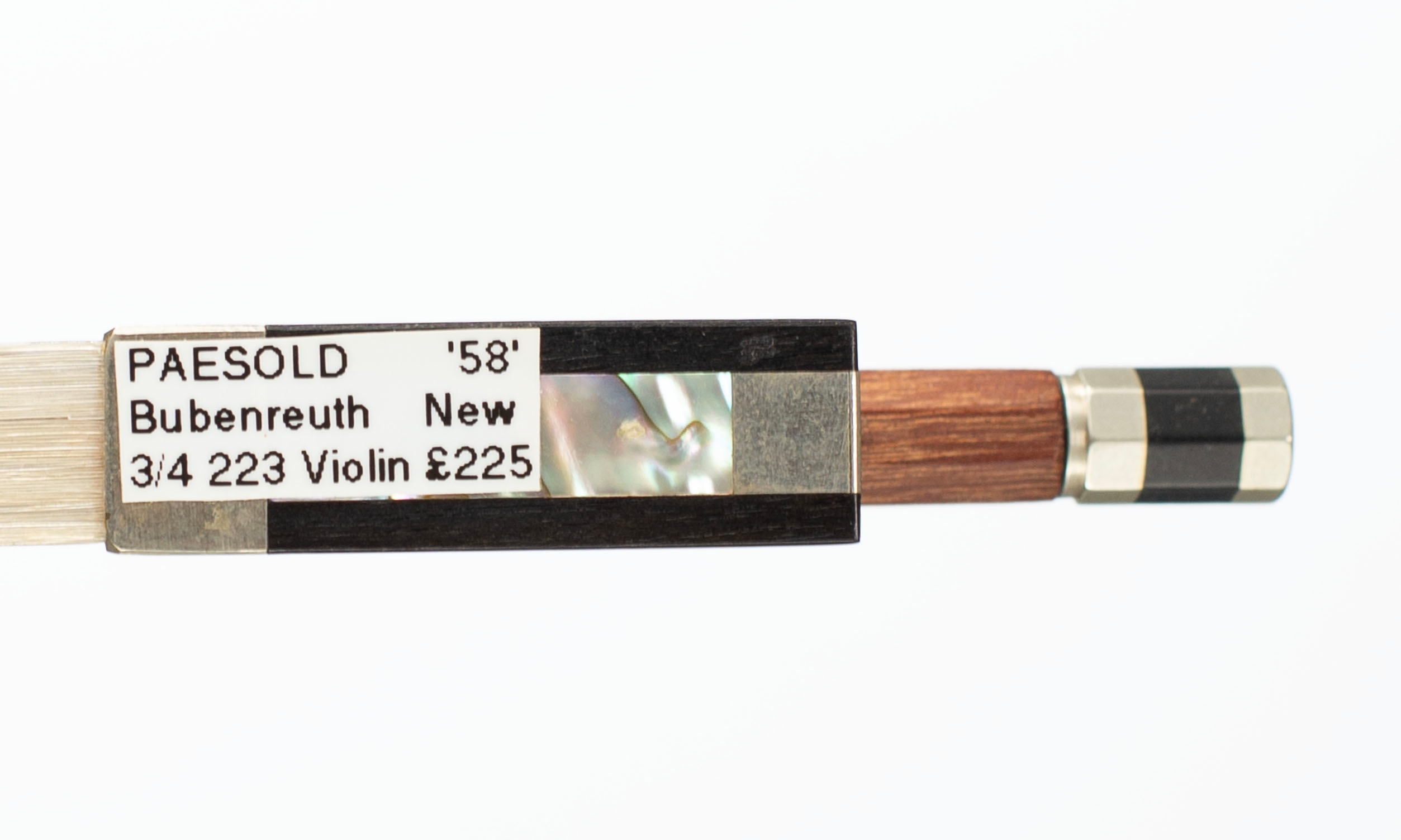 A three-quarter sized violin bow, nickel-mounted, branded Paesold