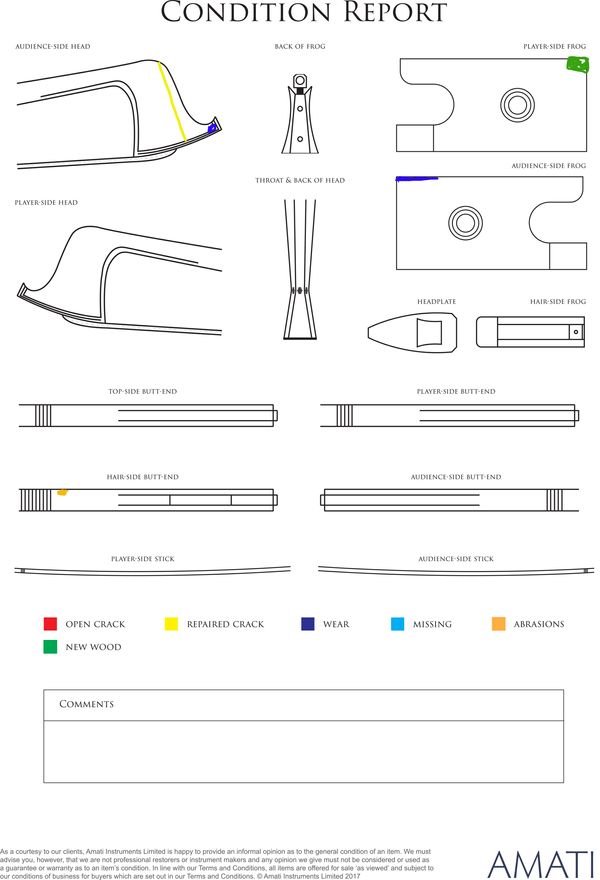 A silver-mounted cello bow by Pierre Cuniot, Mirecourt, 19th Century