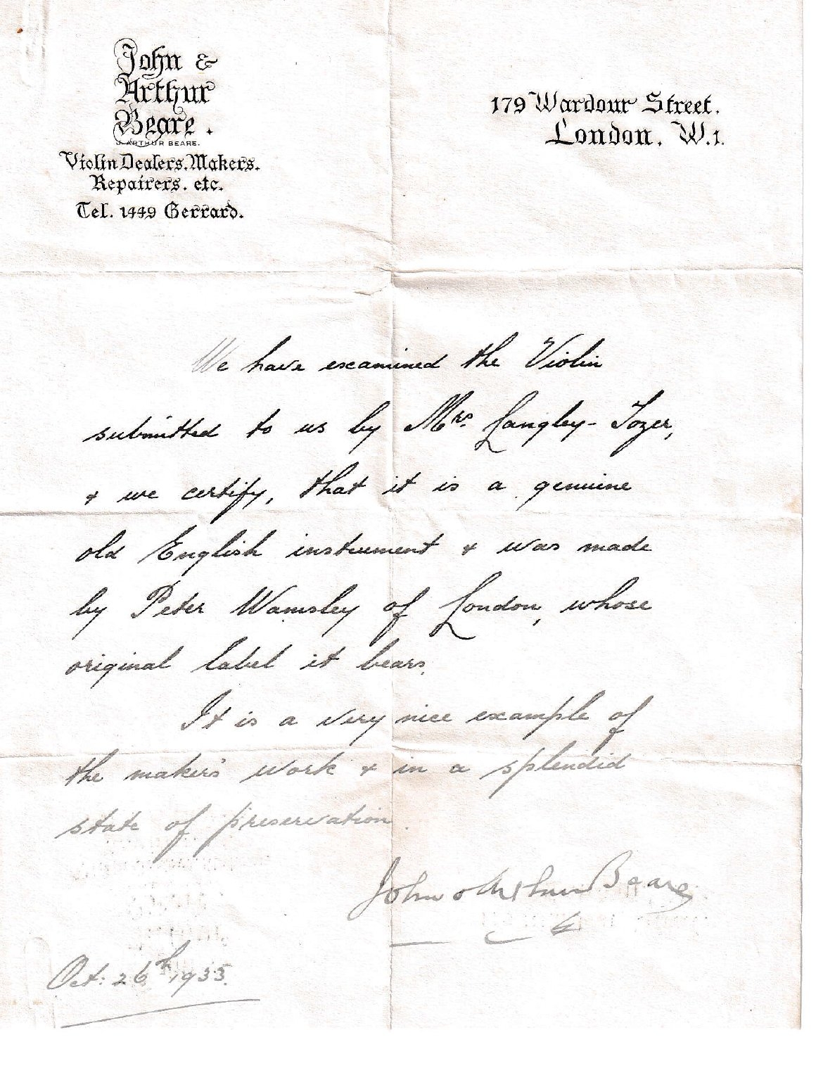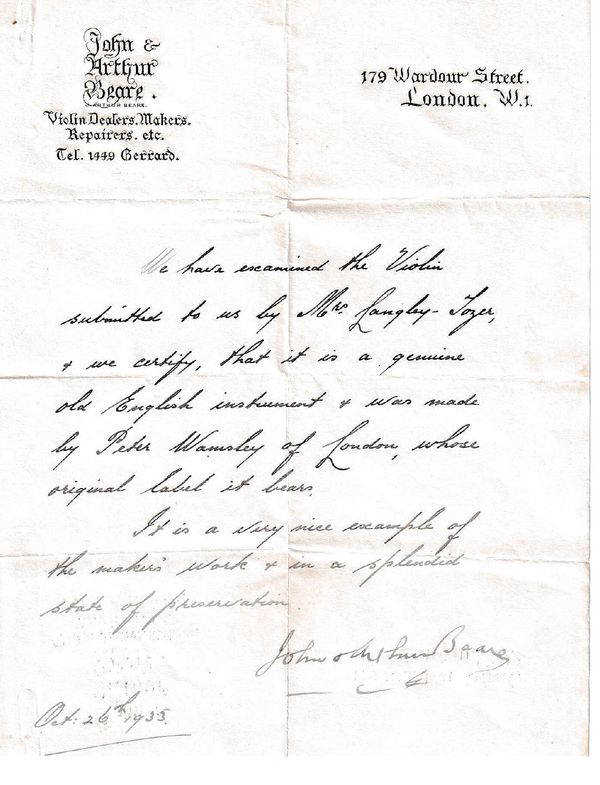 Sold with a letter of opinion from John & Arthur Beare, 1935