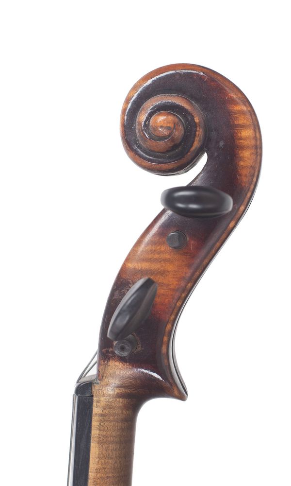 A violin, labelled Rigat Rubus