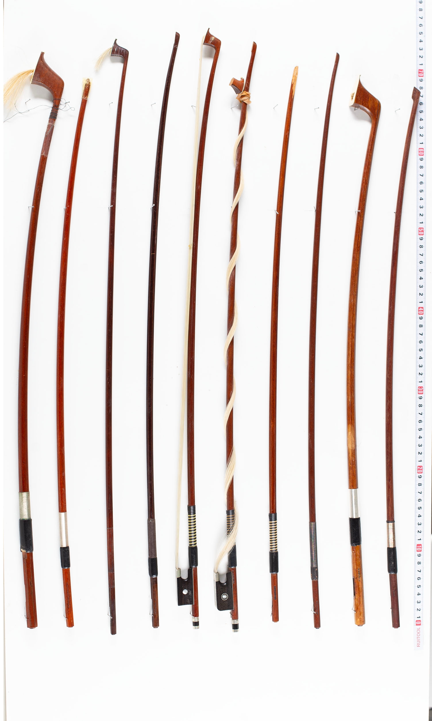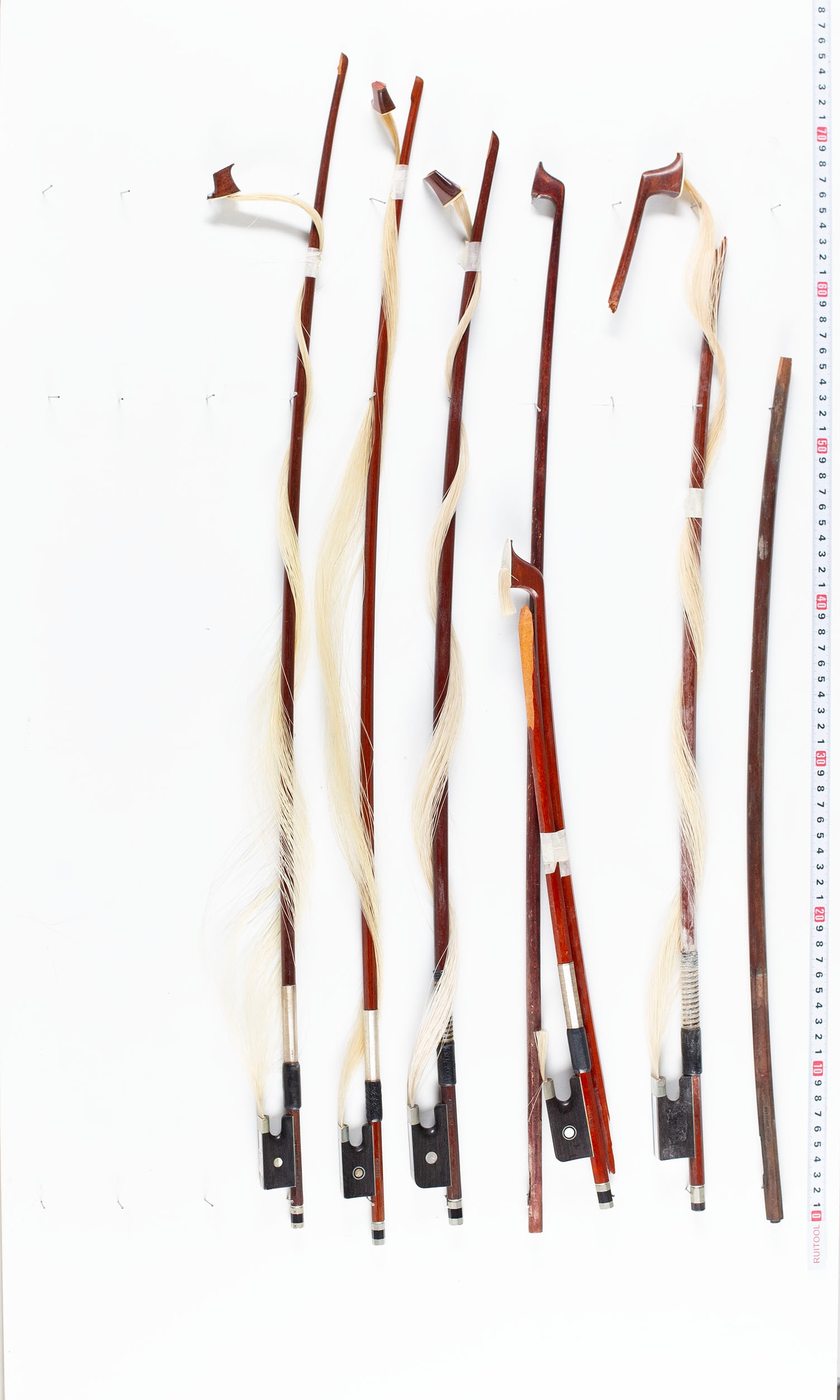 A bundle of eighteen damaged bows, varying sizes