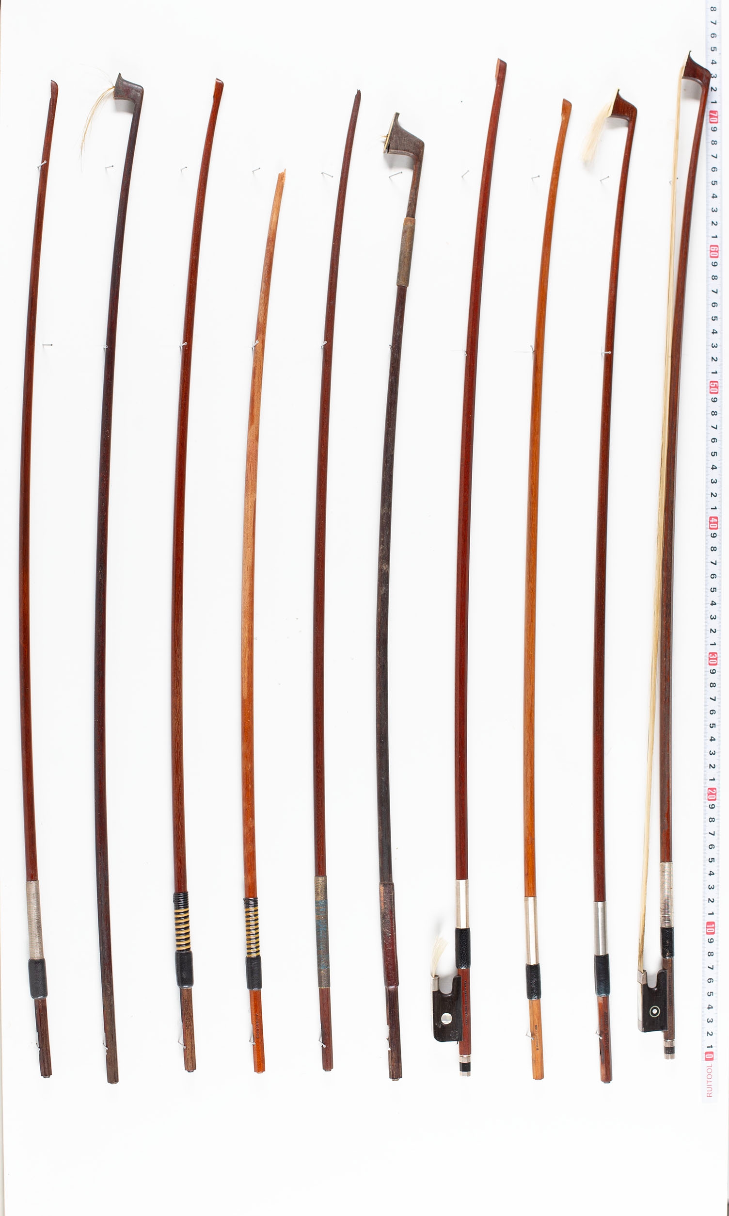 A bundle of eighteen damaged bows, varying sizes