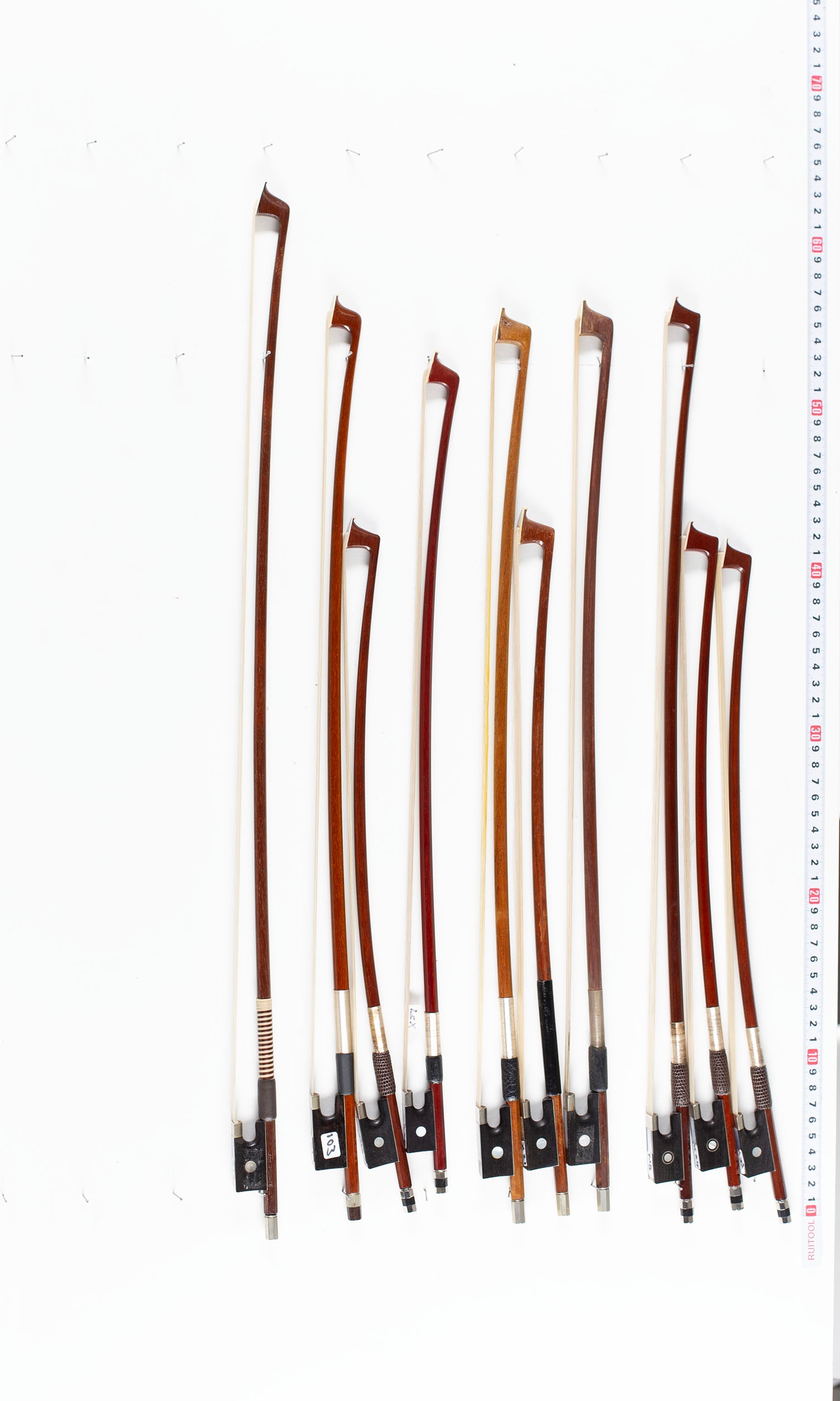 A bundle of ten damaged bows, varying sizes